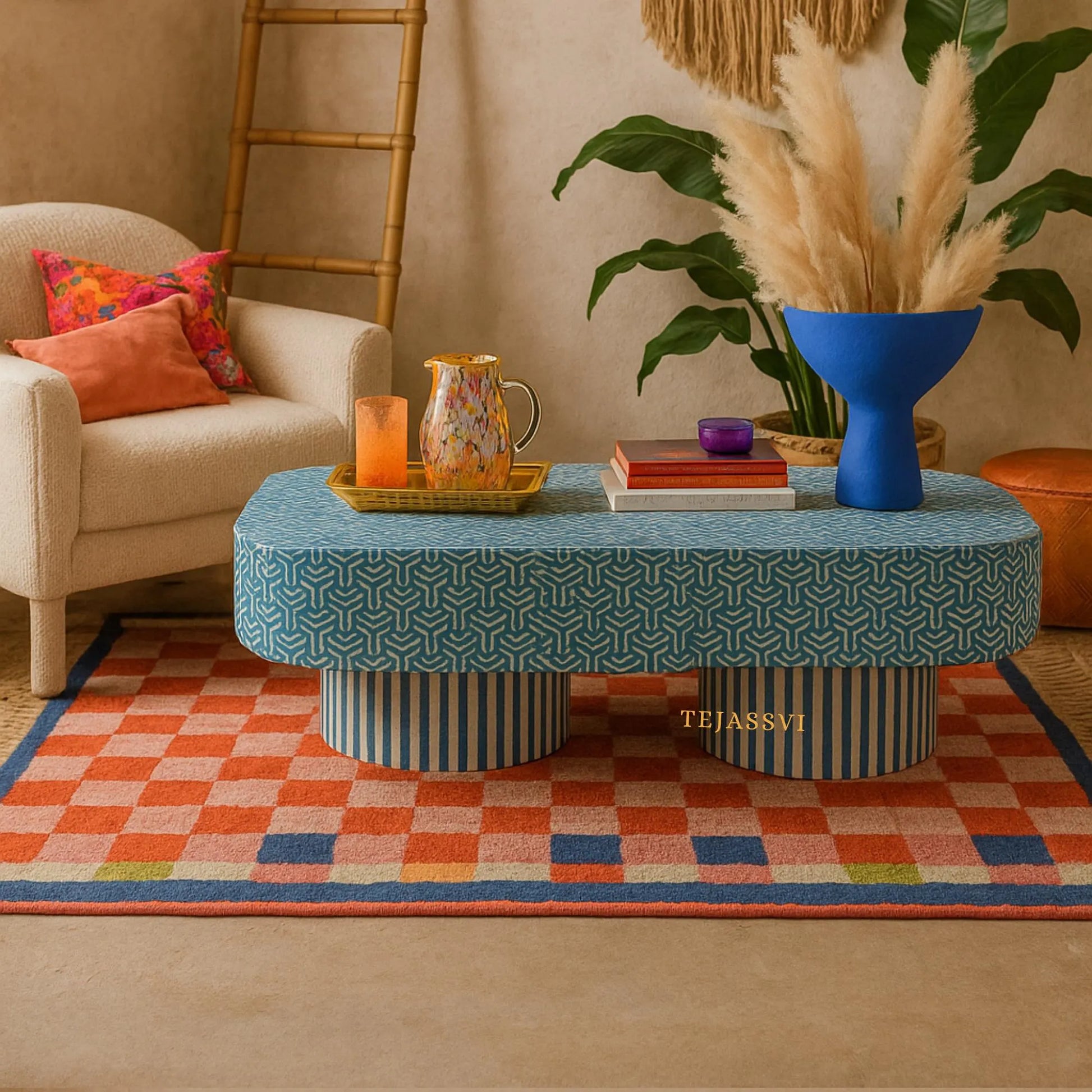 BONE Inlay Coffee Table / Centre Table, Bone Inlay Honeycomb Coffee Table Handmade Bone Inlay Modern Pattern Furniture Cocktail Table Unique table Hand made Round Beautifully Home Decor Table Indian Handcrafted Art