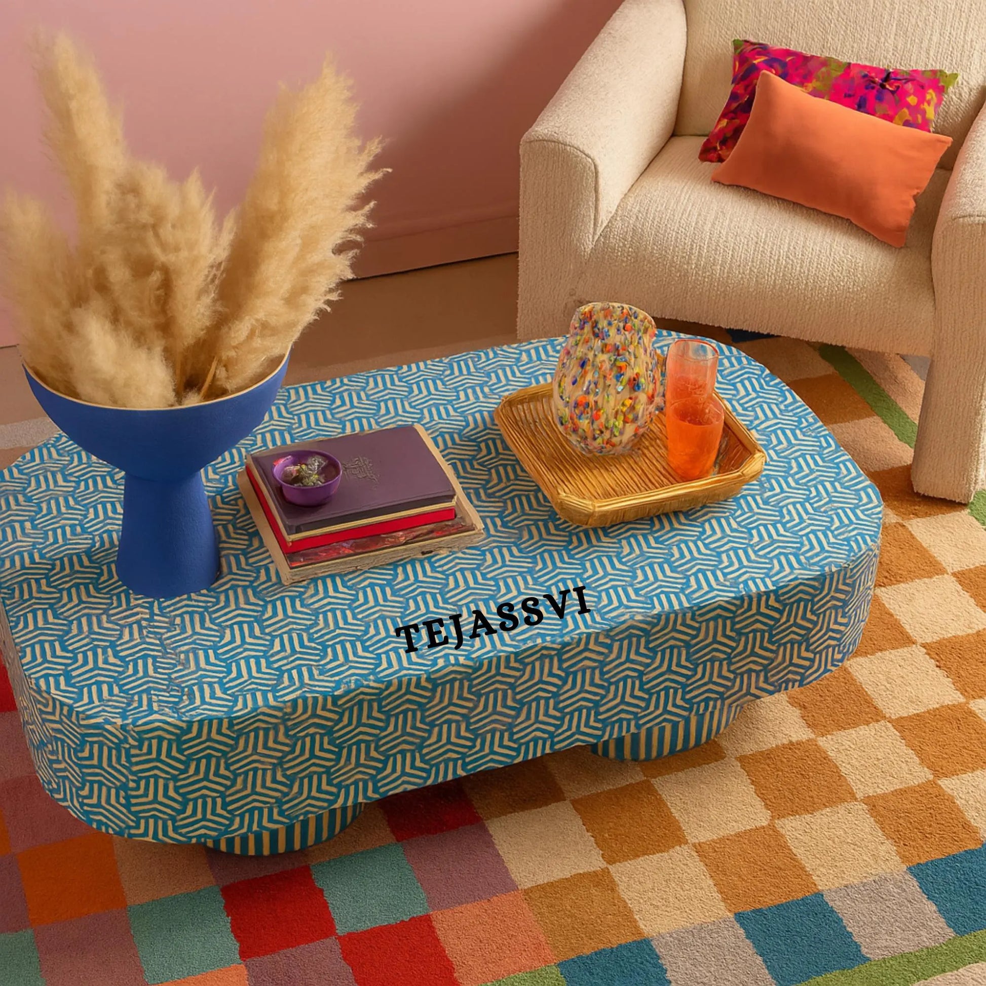 BONE Inlay Coffee Table / Centre Table, Bone Inlay Honeycomb Coffee Table Handmade Bone Inlay Modern Pattern Furniture