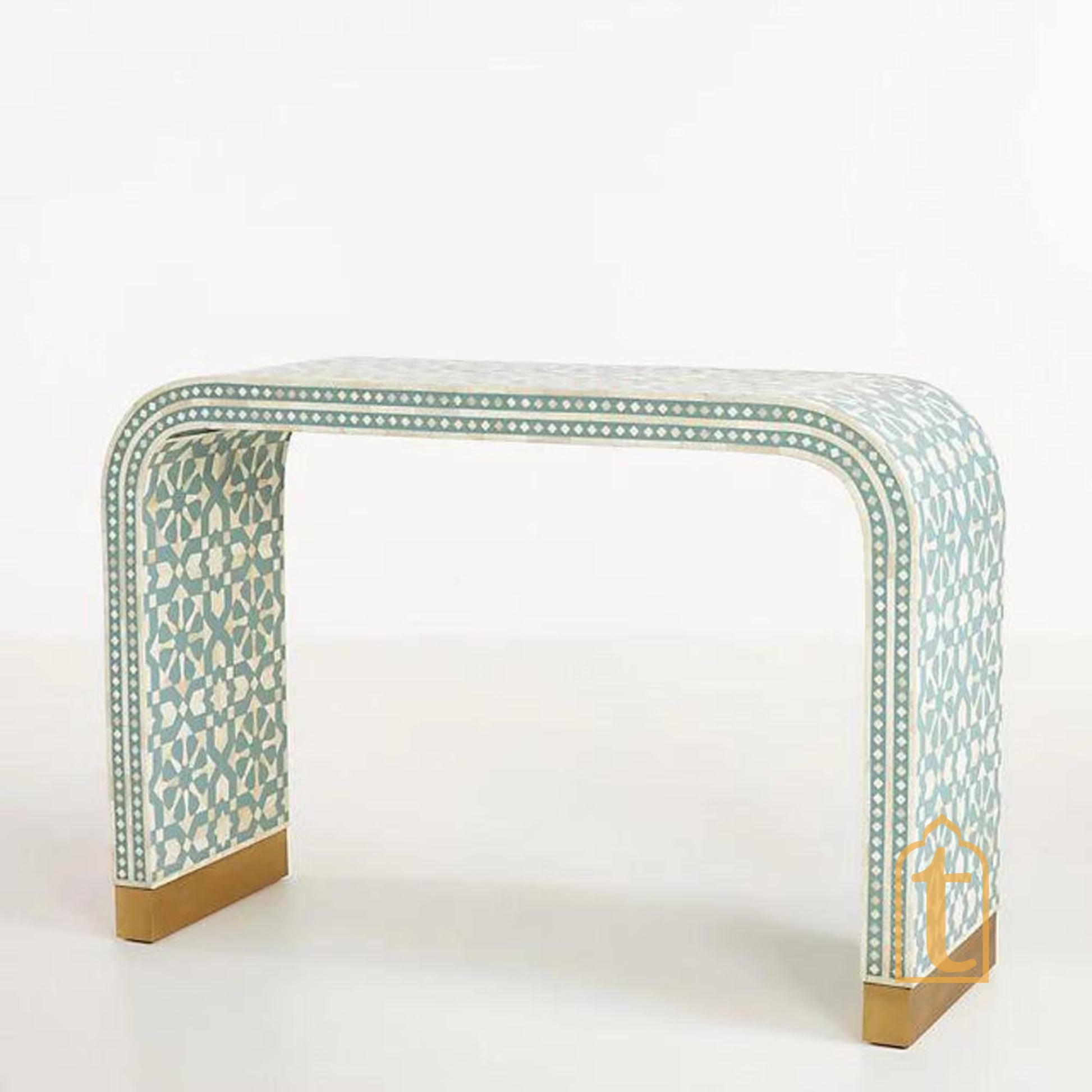 Handmade Bone Inlay Wooden Waterfall/Moroccan design Bone Inlay Console Table/ Laptop Table living room, bone inlay console/Desk/ for lobby