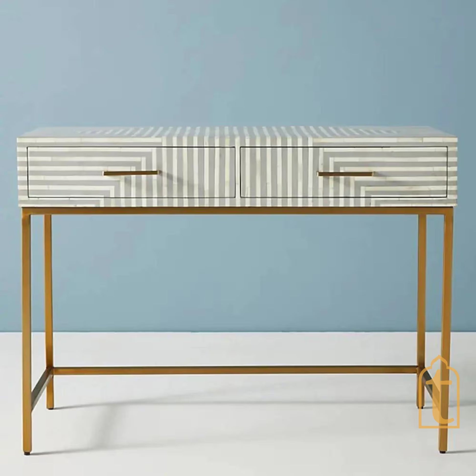Wooden Bone Inlay Console Table | Hall-Way Entry Table | Bone Inlay 2 Drawer Console Table / Bone Inlay Stripe Desk / Bone Inlay Storage.