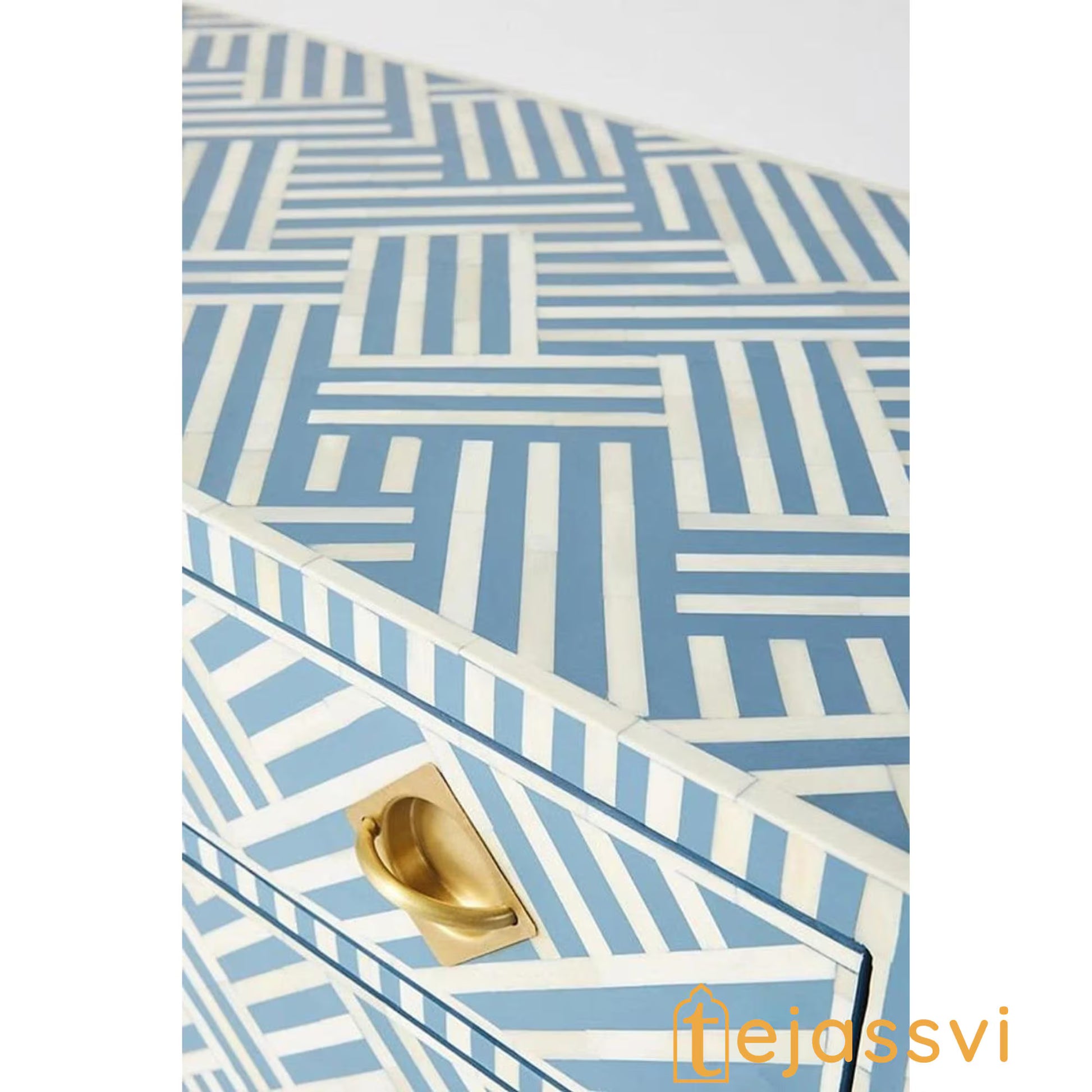 Bone Inlay Chest of 3 Drawers stripe Blue with Brass Legs, Bone Inlay Dresser, Bone Inlay Sideboard, Bone Inlay Furniture, Optical Cabinet