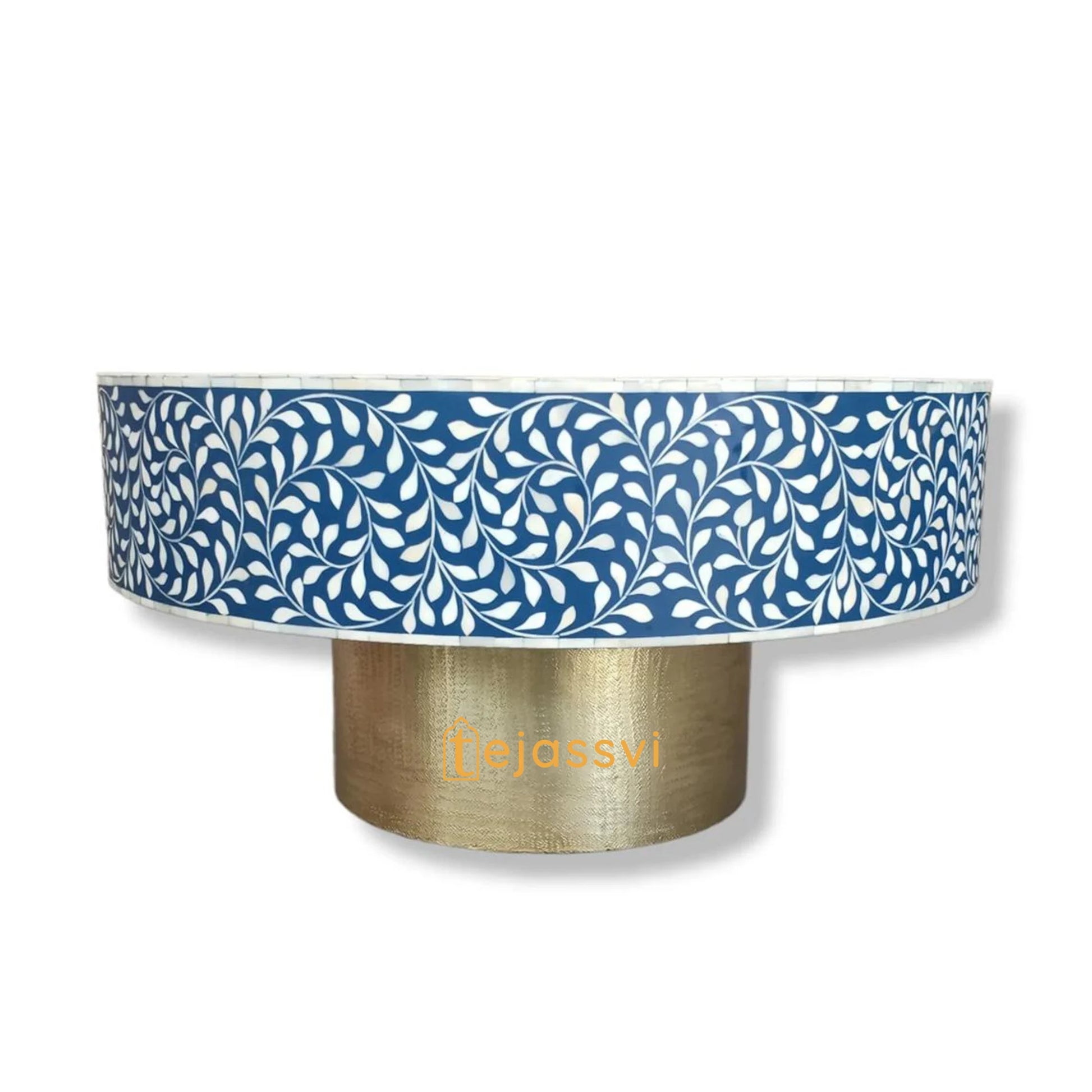 BONE Inlay Round Coffee Table/Centre Table,/Bone Inlay Floral Round Coffee Table Handmade Bone Inlay Modern Pattern Furniture Cocktail Table