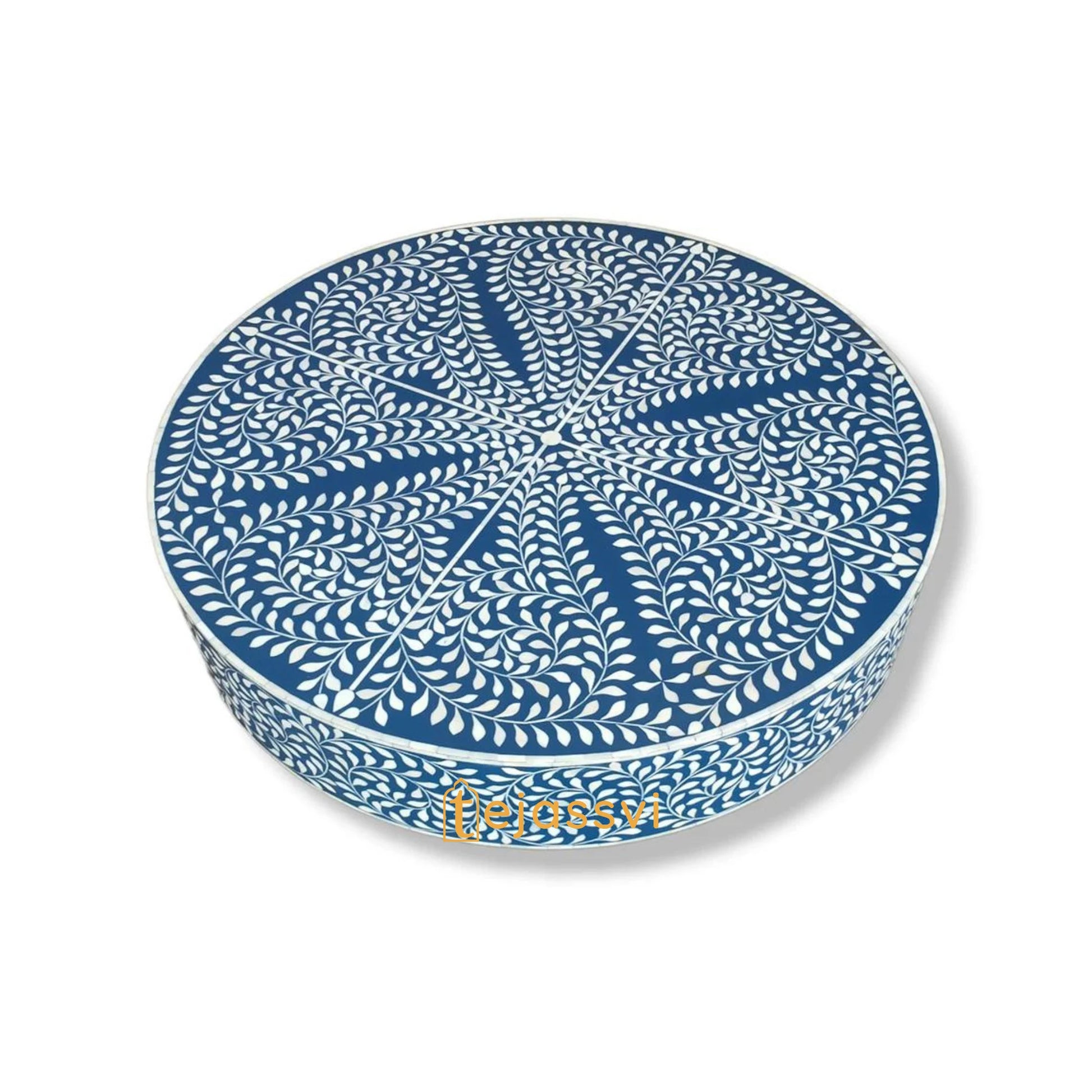 All of our Items are entirely made by hand and is handcrafted by skilled artisans native to India. The process starts with building a wooden base for the any items, Chips of bone, ethically sourced as a by-product, are carefully cut into delicate shapes by several artisans. These chips are then affixed in various intricate patterns onto the resin, all by hand. Each Product is finally waxed and polished to bring out the detailed textures and beauty of the inlay work.