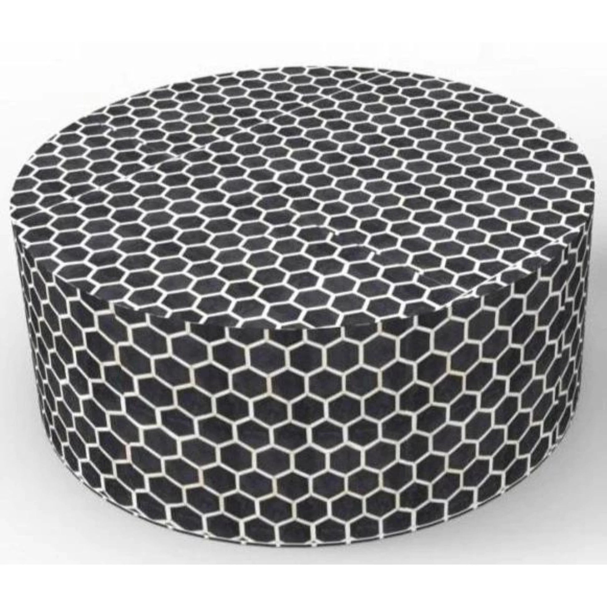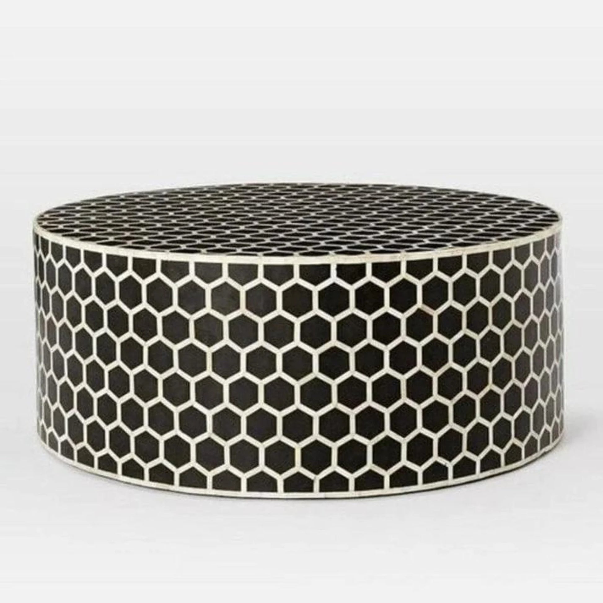 BONE Inlay Round Coffee Table/Centre Table, Bone Inlay Stripe Round Coffee Table Handmade Bone Inlay Modern Pattern Furniture Cocktail Table