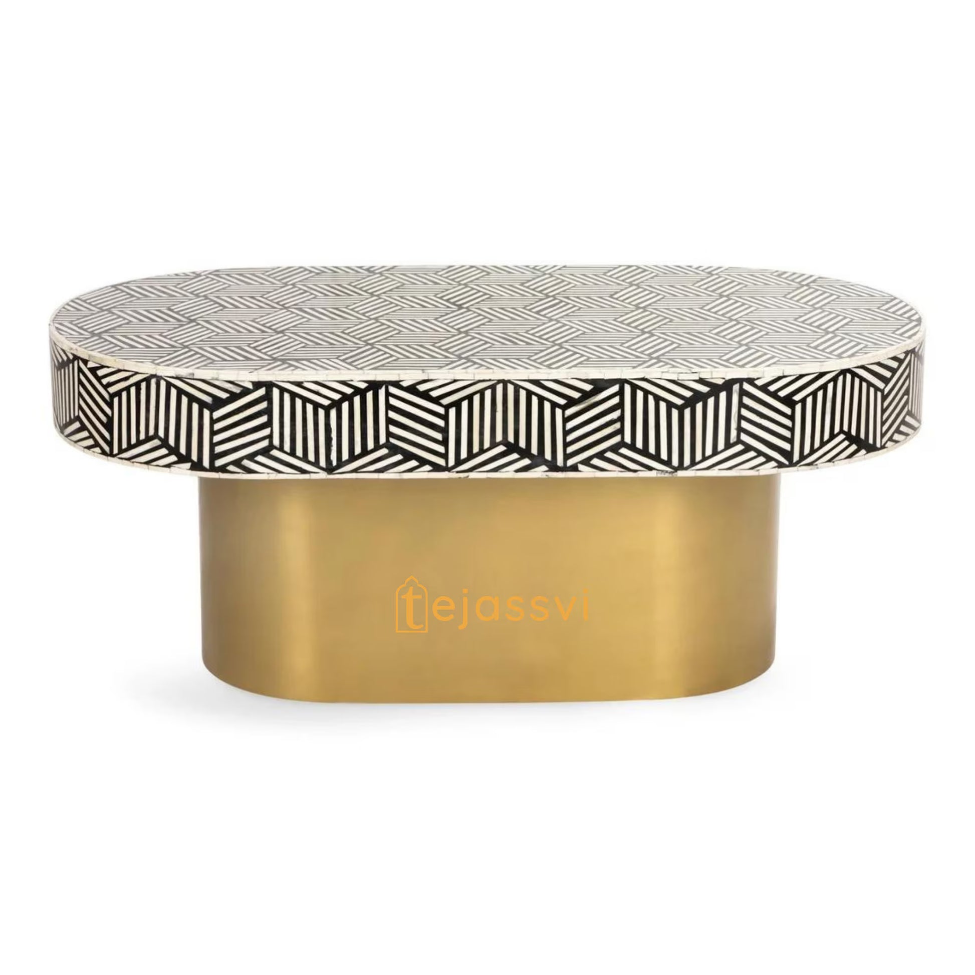 Wooden Oval Shape Coffee Table, BONE INLAY TABLE, Oval Shape Coffee Table, Strip Design Centre Table, Bone Inlay Furniture Cocktail Table...