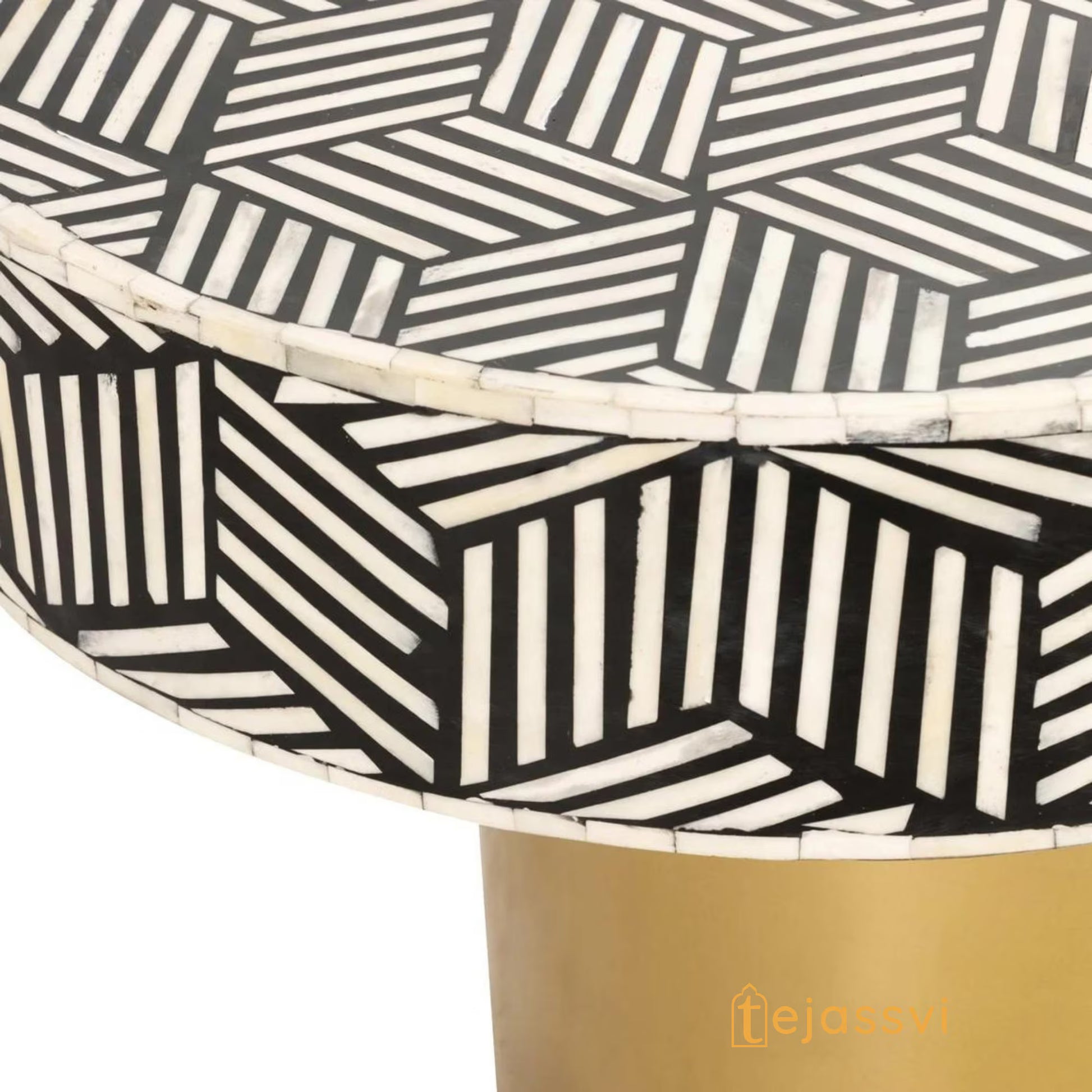 BONE Inlay Oval Coffee Table / Centre Table, Bone Inlay Strip design Oval Coffee Table Handmade Bone Inlay Modern Pattern Furniture Cocktail Table Unique table Hand made Round Beautifully Home Decor Table Indian Handcrafted Art