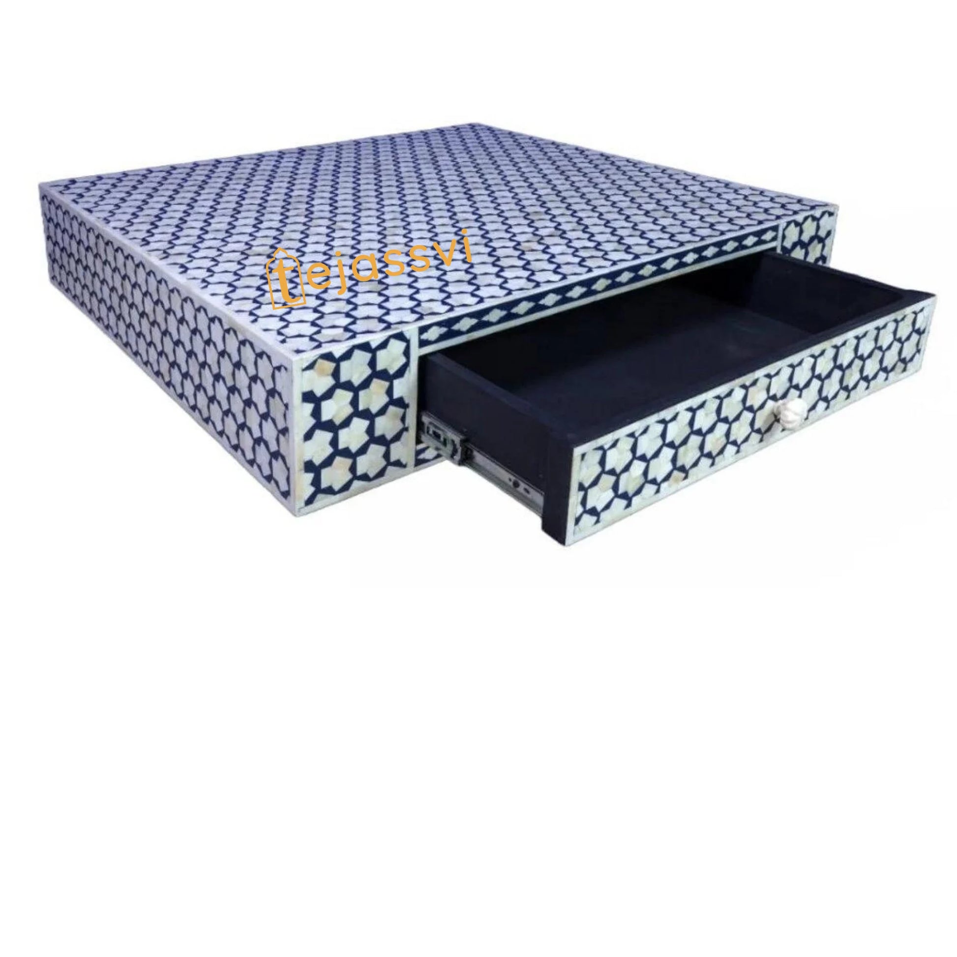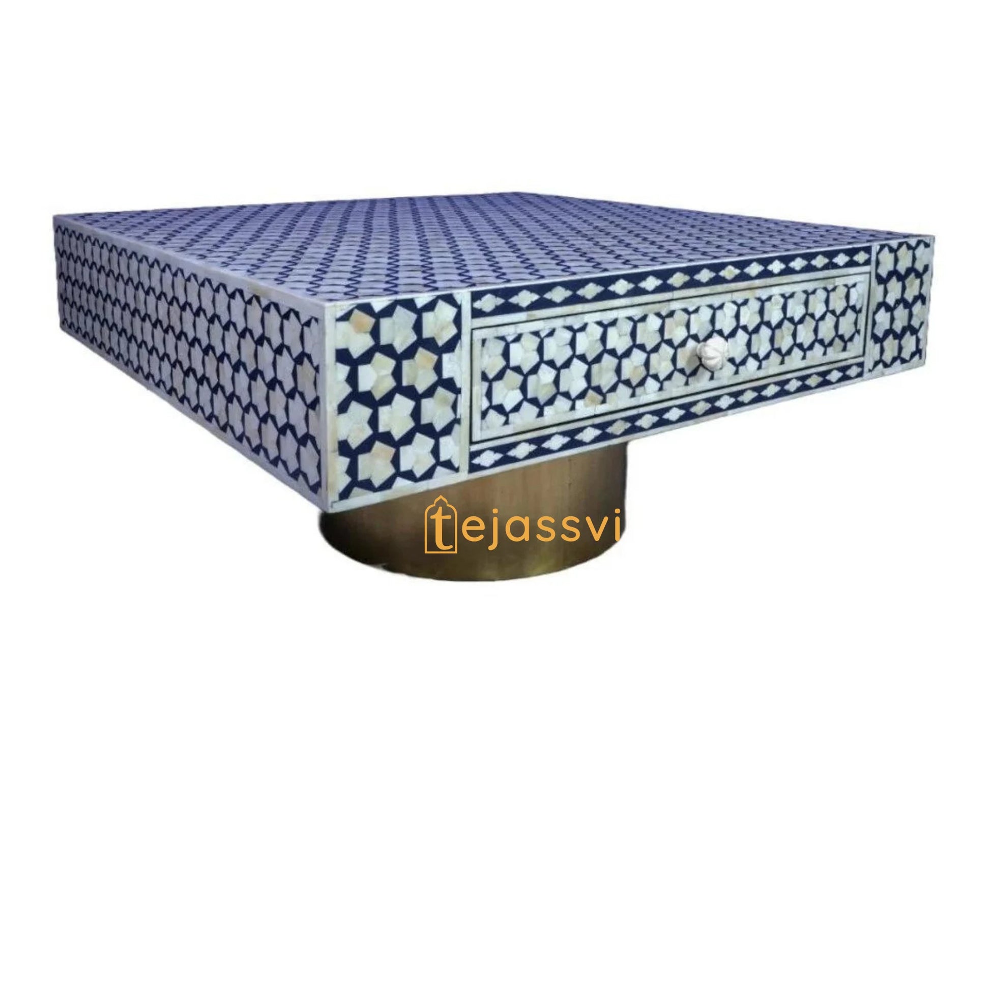 Handmade Bone Inlay Coffee Table With Storage, Bone Inlay Table, Floral design Laptop Table, Bone Inlay Cocktail Table, Modern Furniture..