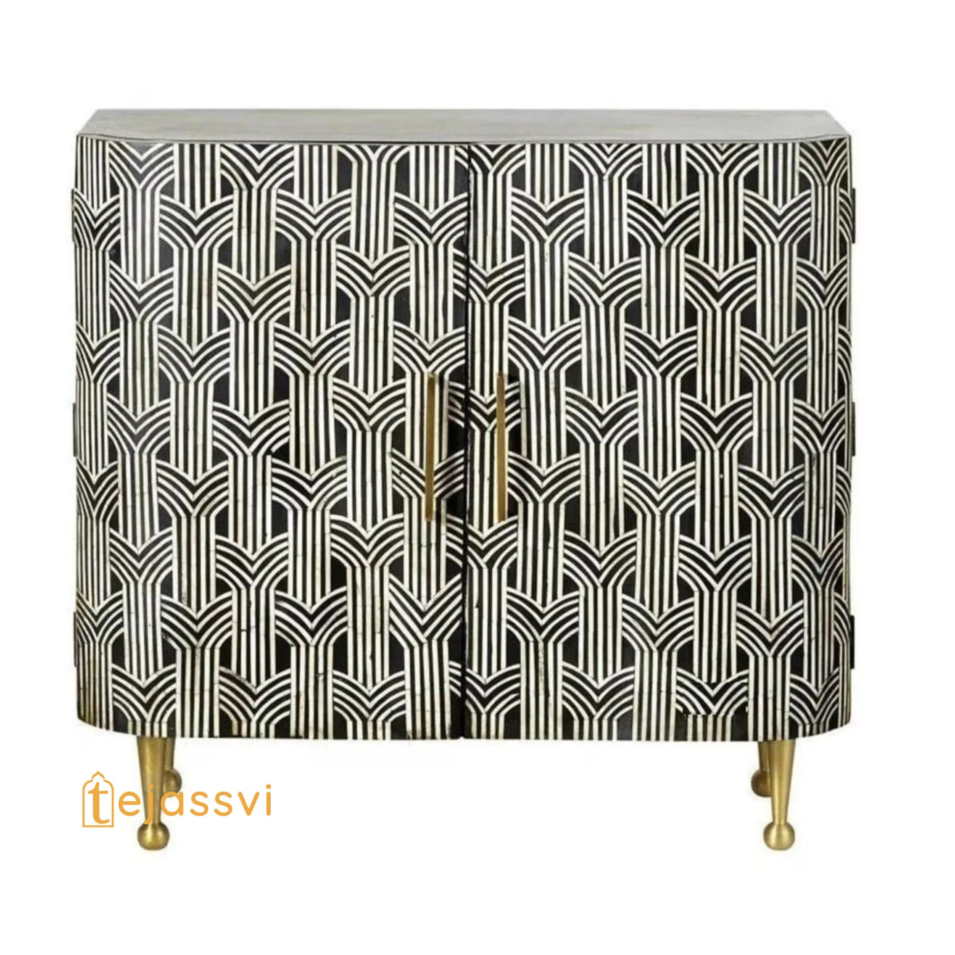 Explore the beauty of our Bone inlay Cabinet is timeless in your furniture & accessories collection. This beautiful Bone Inlay 2 Doors Vintage Cabinet furniture is a unique investment piece to be loved for years to come. The gorgeous combination of resin and Bone has everlasting appeal and creates a relaxed bohemian elegance in your home.