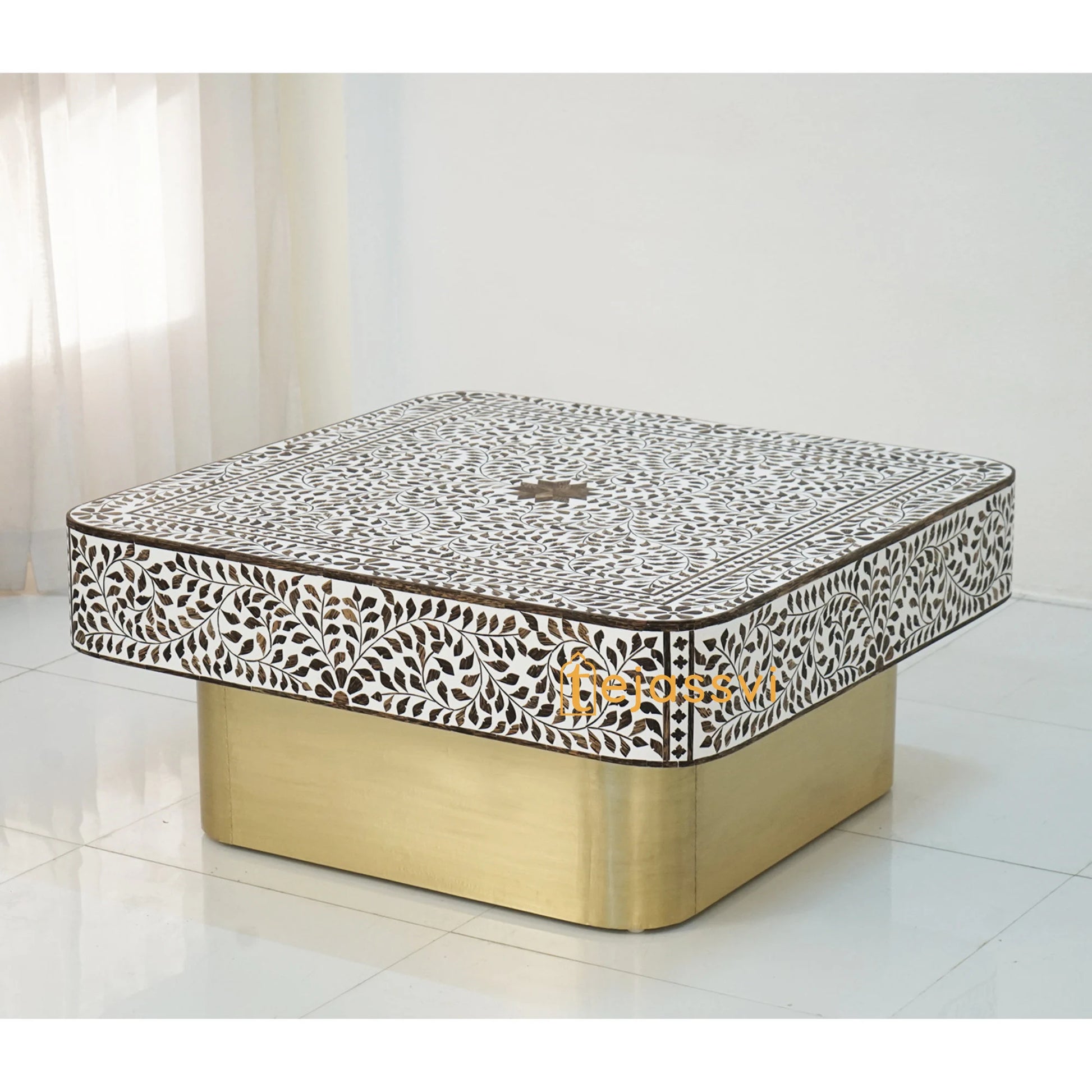 Wooden Square Coffee Table/Bone Inlay Coffee Table/Center Table/Wood Inlay Table/Floral Design Wood Inlay Cocktail Table/Wooden CoffeeTable