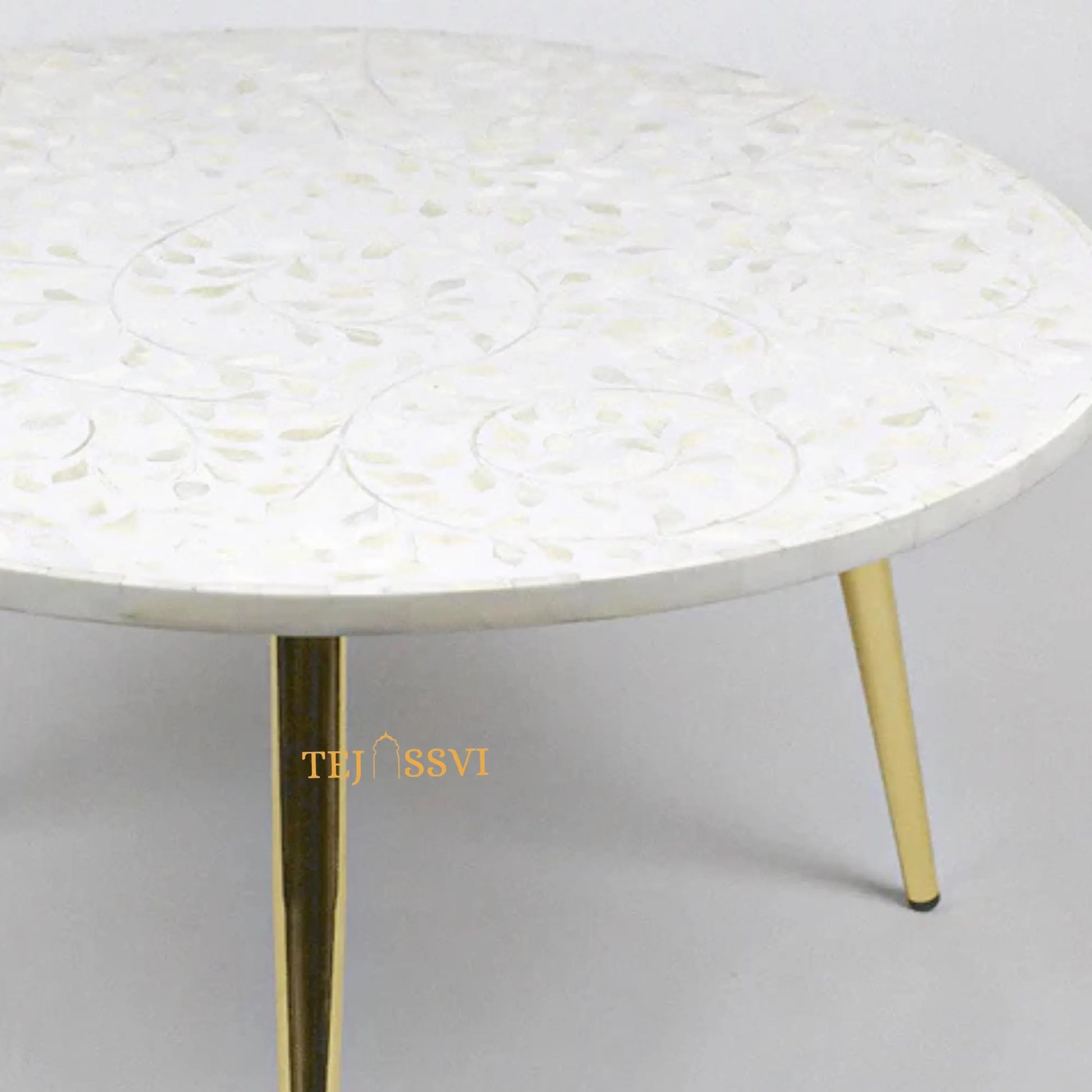 BONE Inlay Round Coffee Table / Centre Table, Bone Inlay Floral Round Coffee Table Handmade Bone Inlay Modern Pattern Furniture Cocktail Table Unique table Hand made Round Beautifully Home Decor Table Indian Handcrafted Art