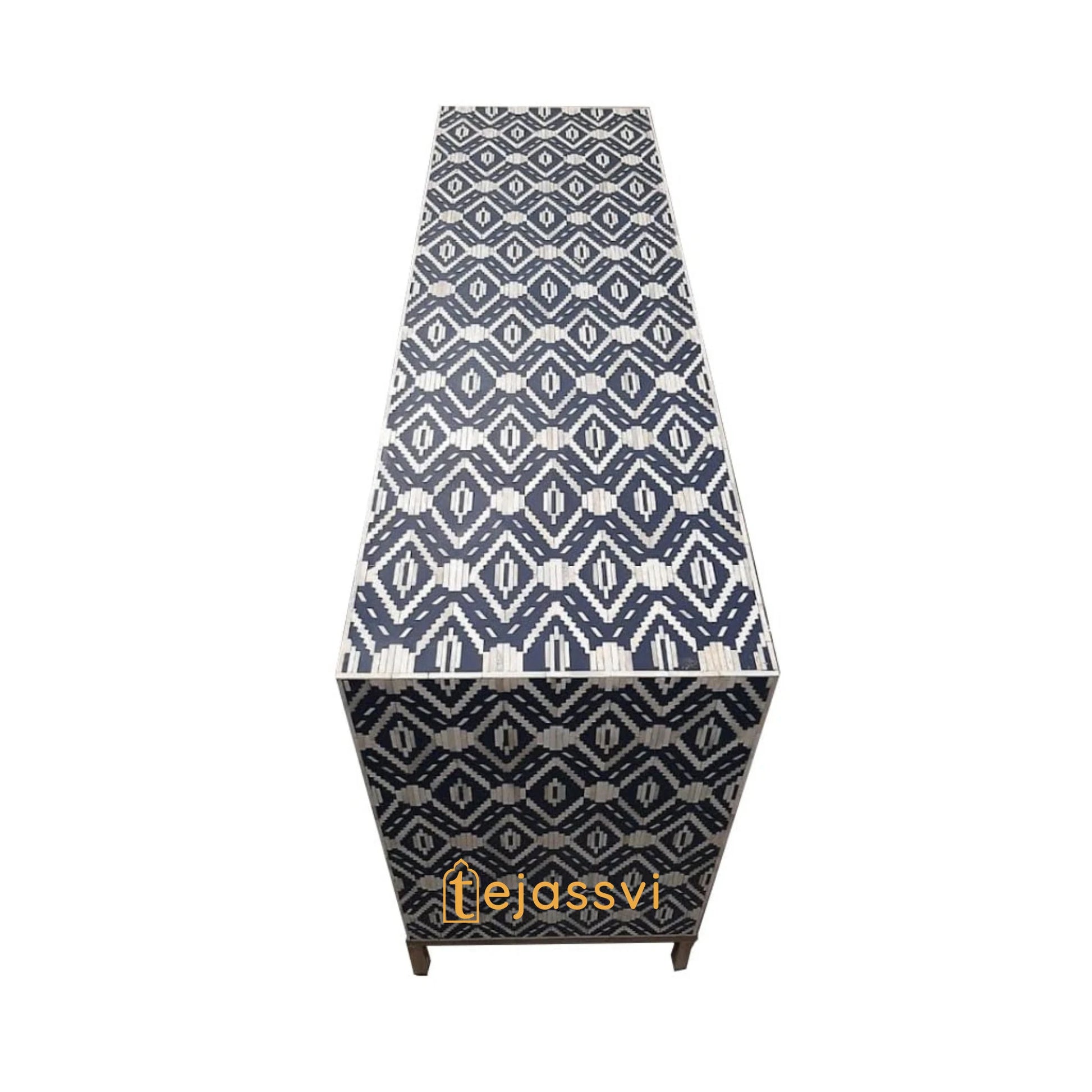 Dark Blue Bone Inlay Dresser: Diamond Floral Pattern 6-Drawer Chest / bone inlay sideboards / bone inlay console / bone inlay furniture