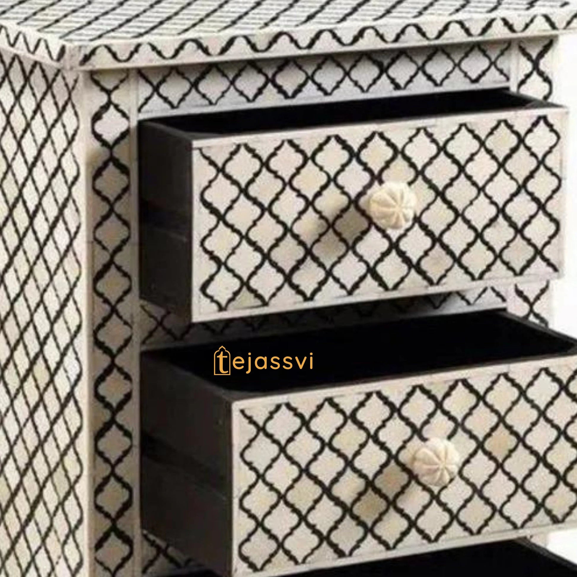 Bone Inlay 3-Drawer Nightstand in Black Color | Handmade Bone Inlay Lamp Side Table /Bedside table /Chest of 3-Drawer Bone Inlay furniture.