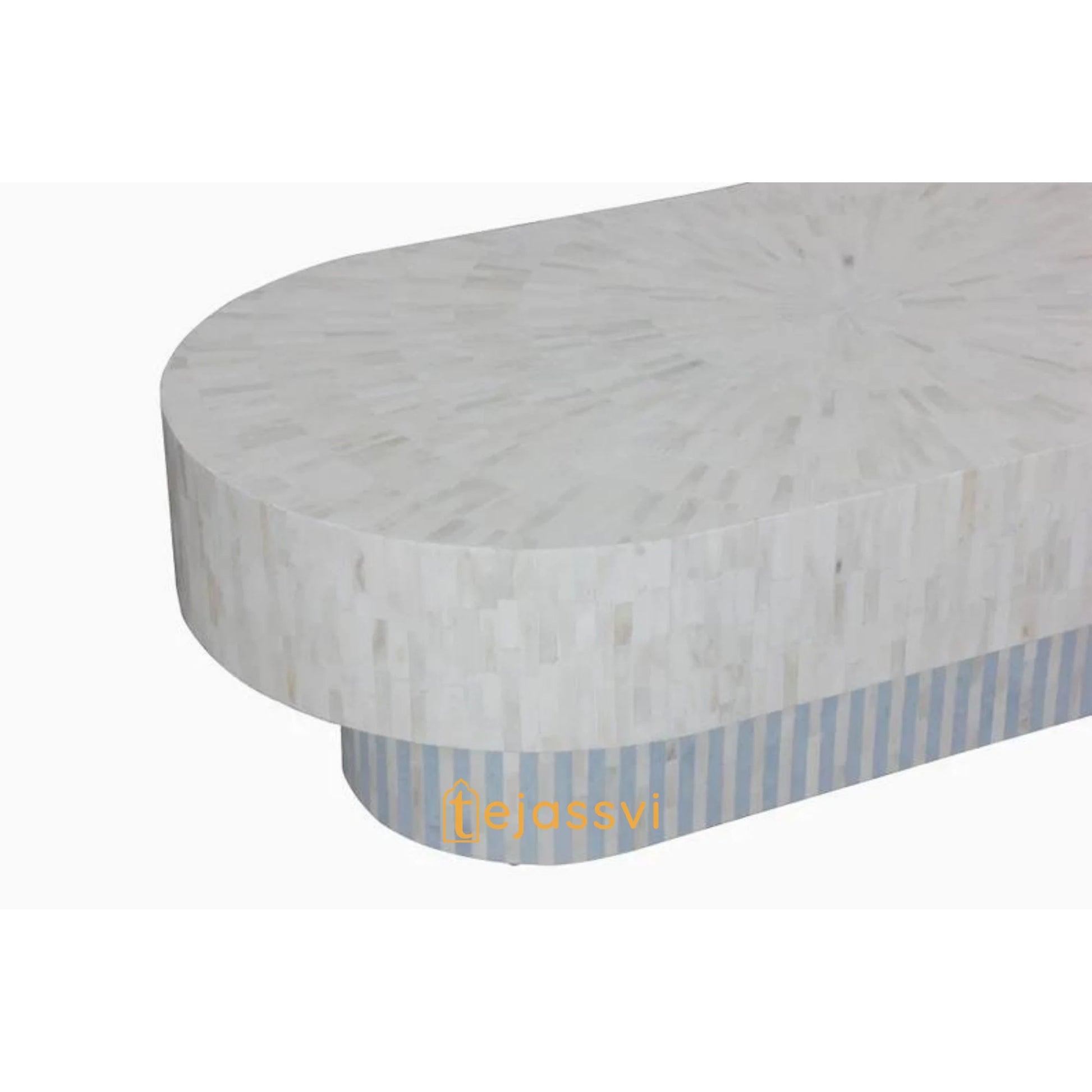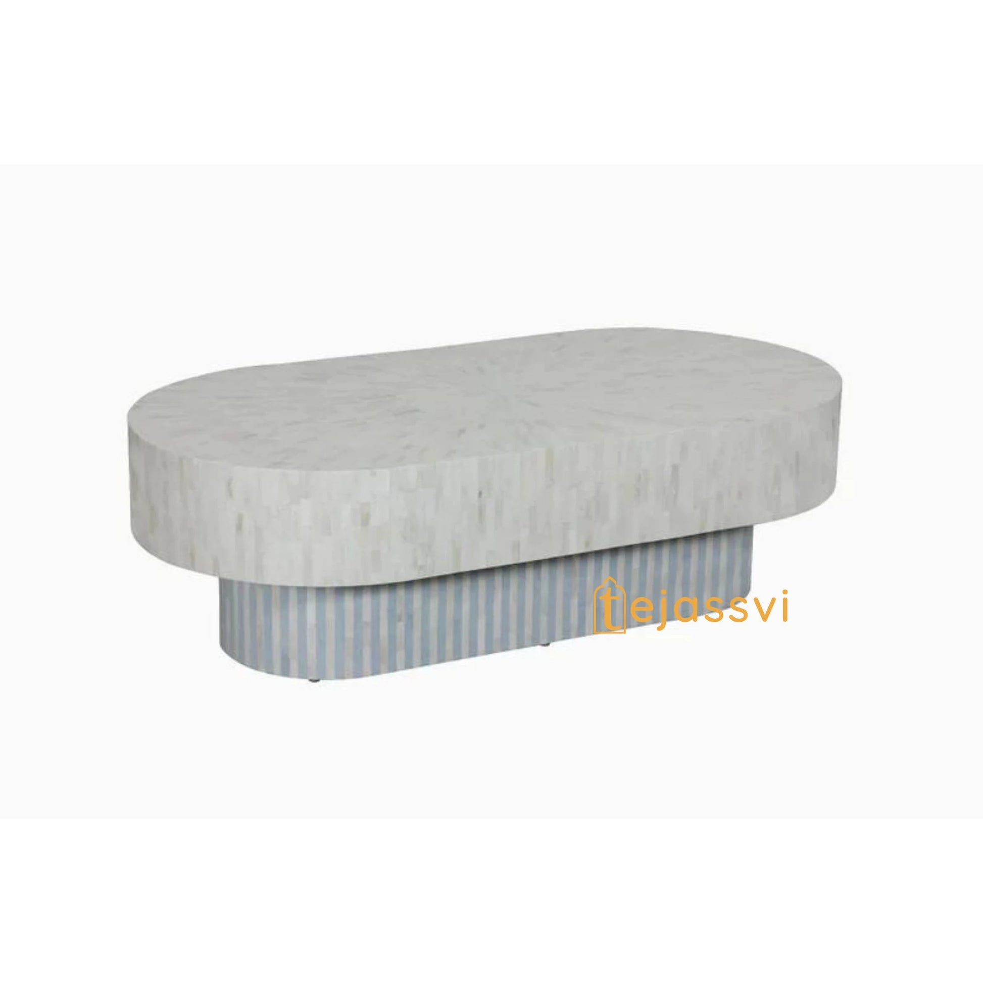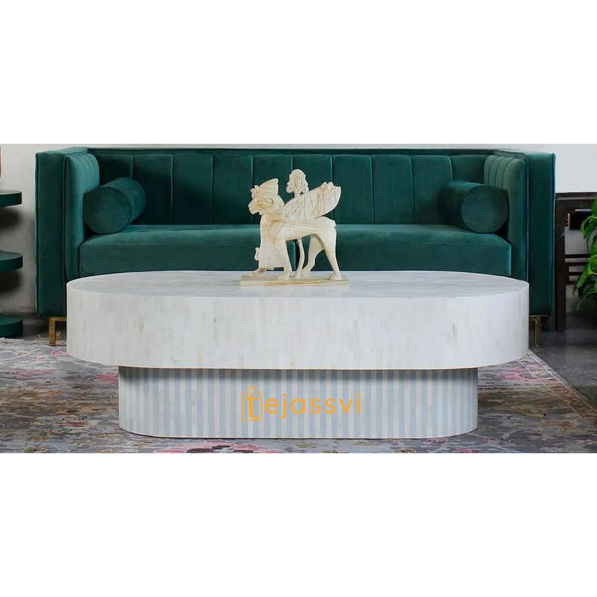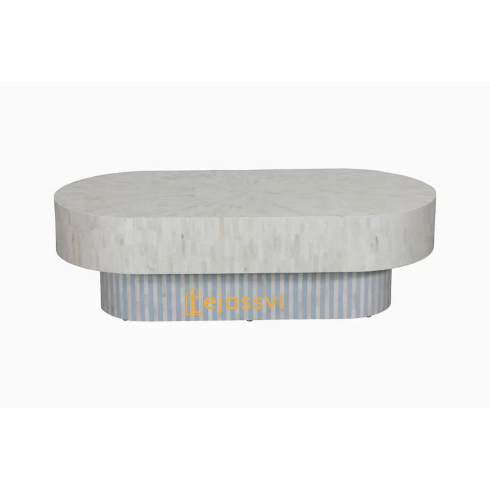 BONE Inlay Oval Coffee Table / Centre Table, Bone Inlay Floral design Oval Coffee Table Handmade Bone Inlay Modern Pattern Furniture Cocktail Table Unique table Hand made Round Beautifully Home Decor Table Indian Handcrafted Art..