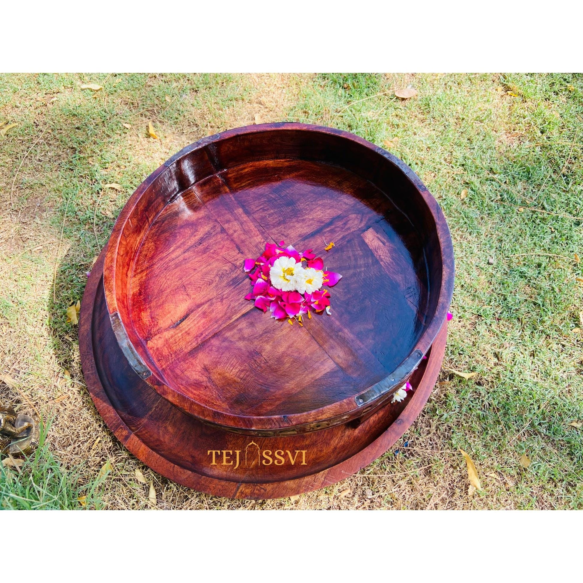 Wooden Coffee Table Natural Hand Made Carved Round Indian Grinder Table Chakki Table / Central Home Décor Side Table / Beautiful Handicraft Art.