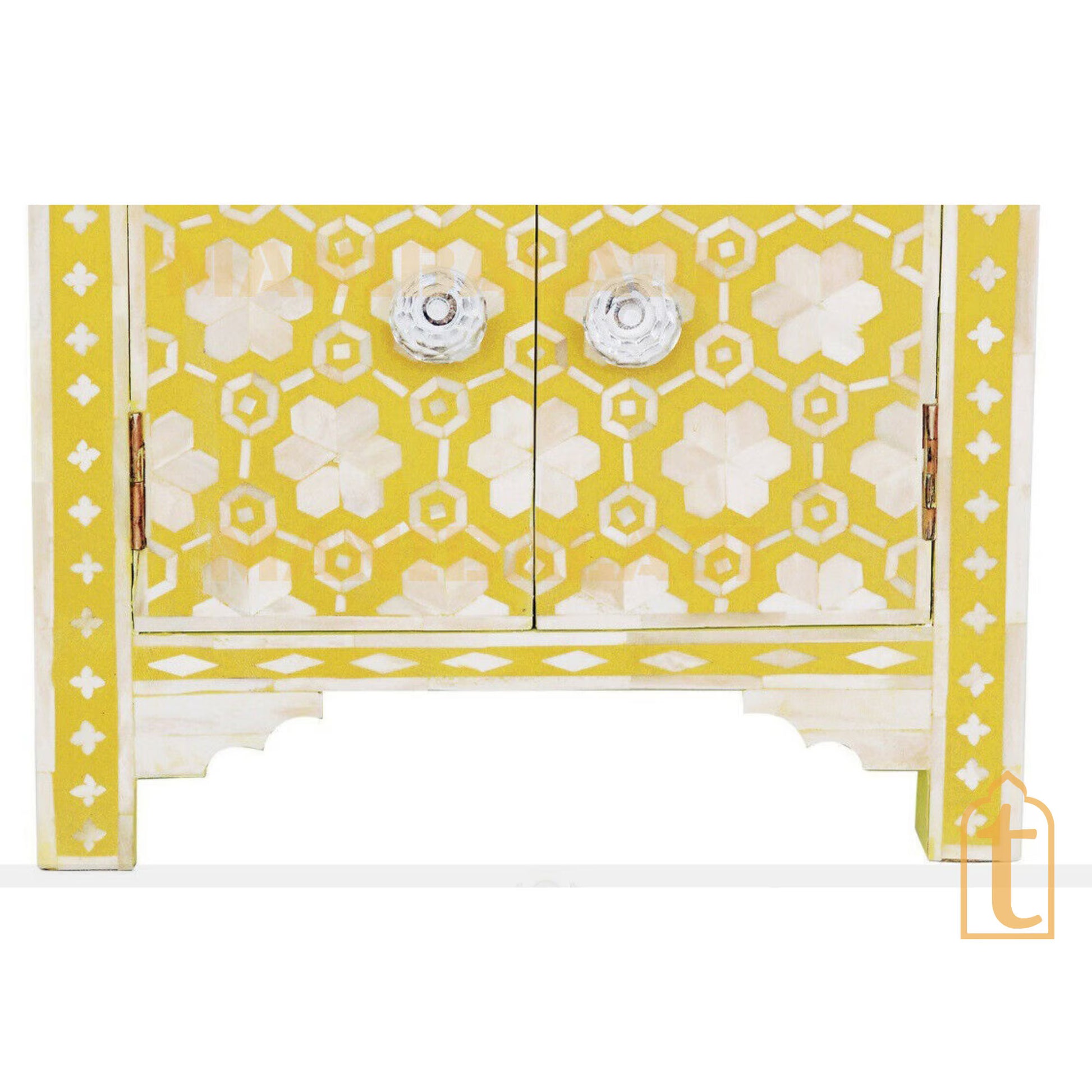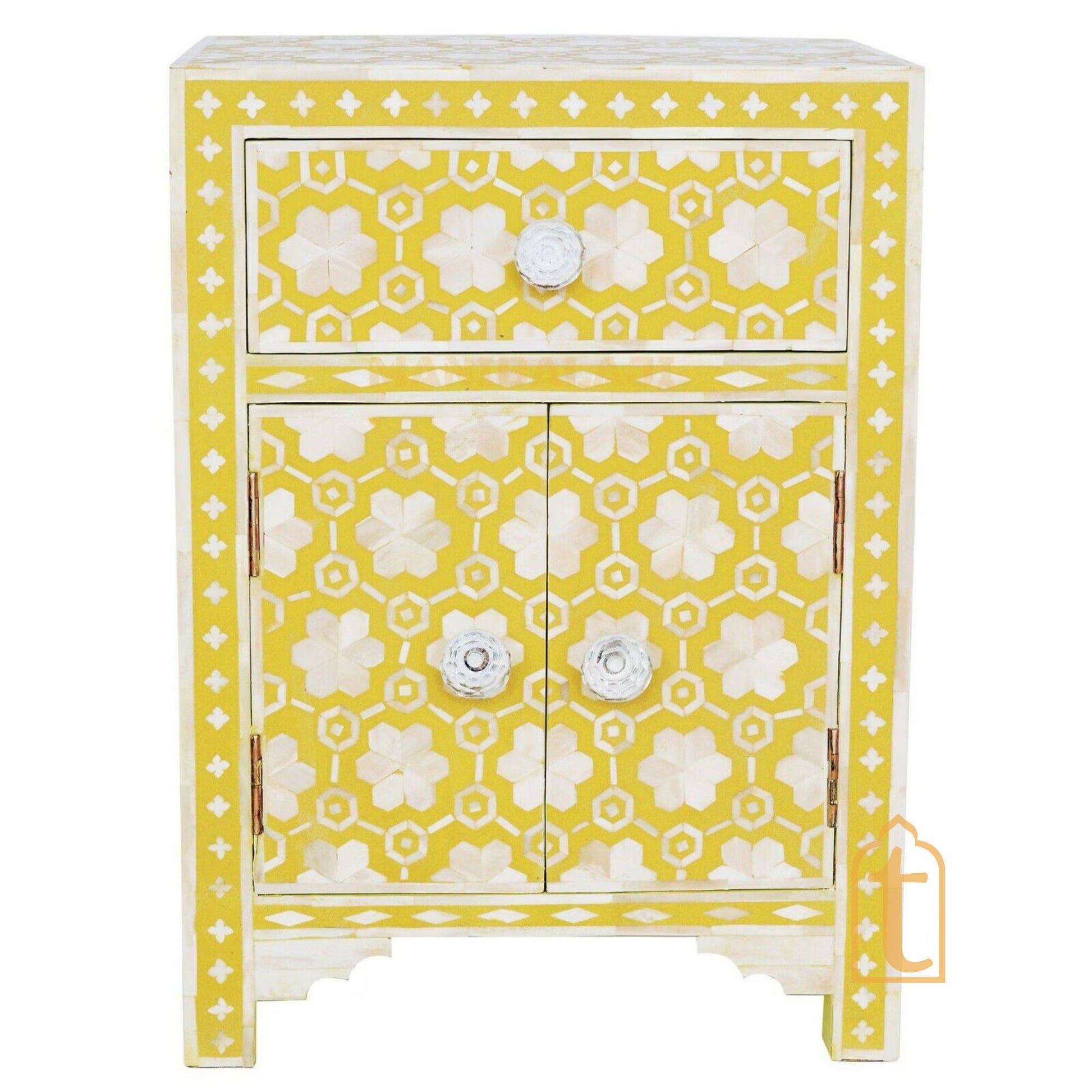 This Piece of Bedside looks Elegant or Stunning due to its Beautiful Floral design .This bedside include 1 Drawer and 2 Door which give a enchanting look to bedside.