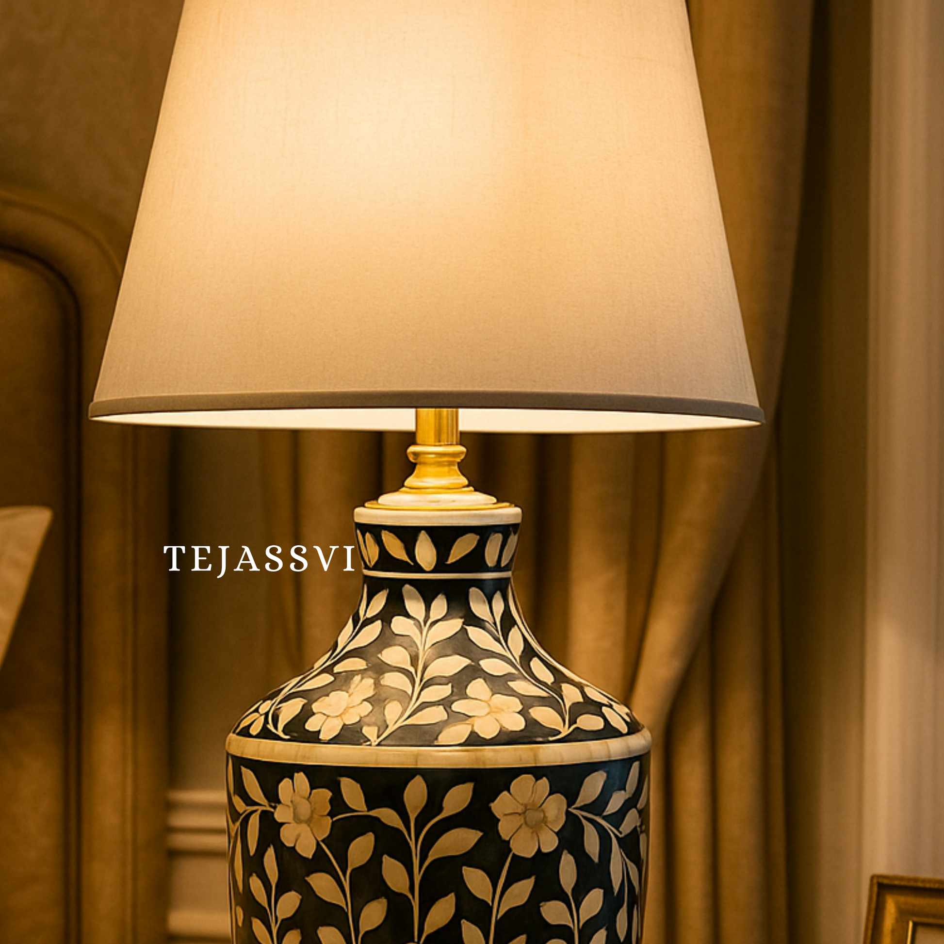 An ideal combination of form and function, our bone inlay lamp is a stunning lighting fixture.
