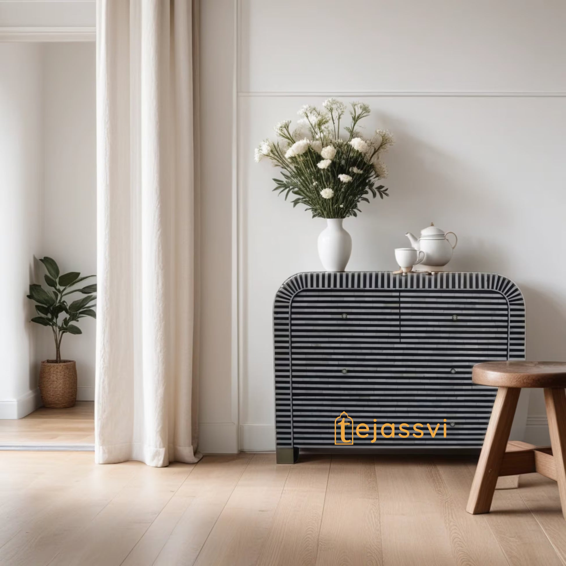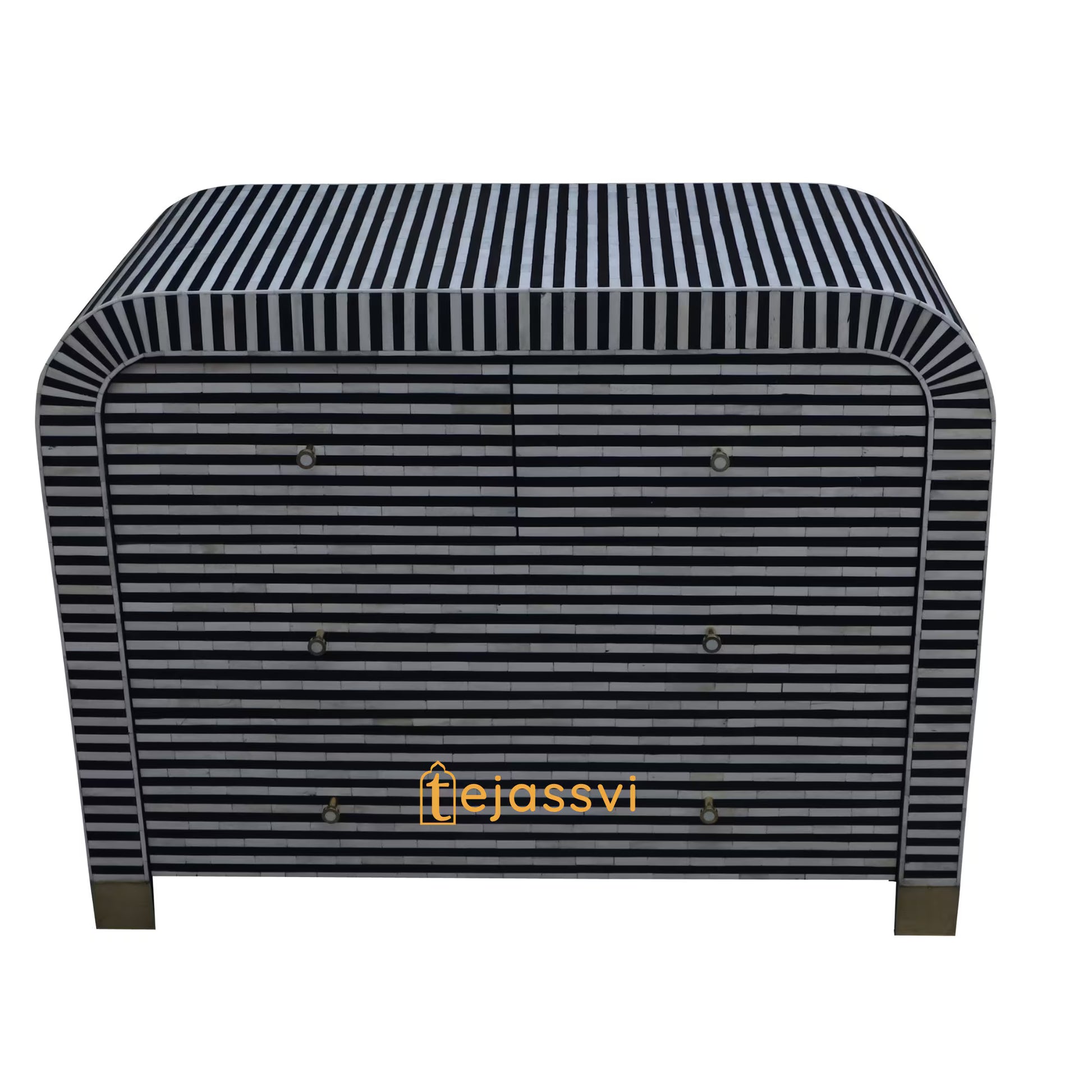 Handmade Bone Inlay Waterfall 3 Drawers Black/Bone Inlay Waterfall 3 Drawers Dresser Table Black/Bone Inlay Storage Unit/Wooden Side Boards.