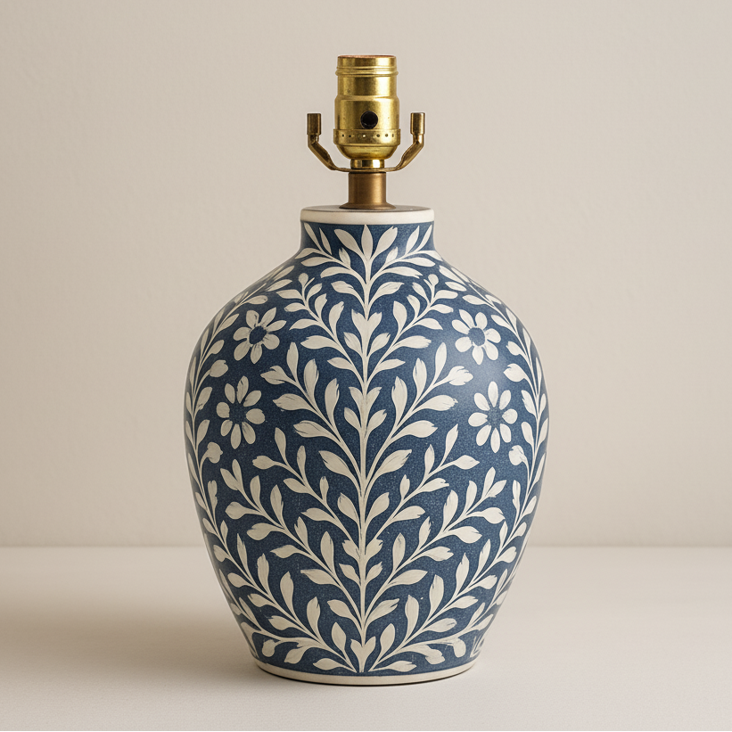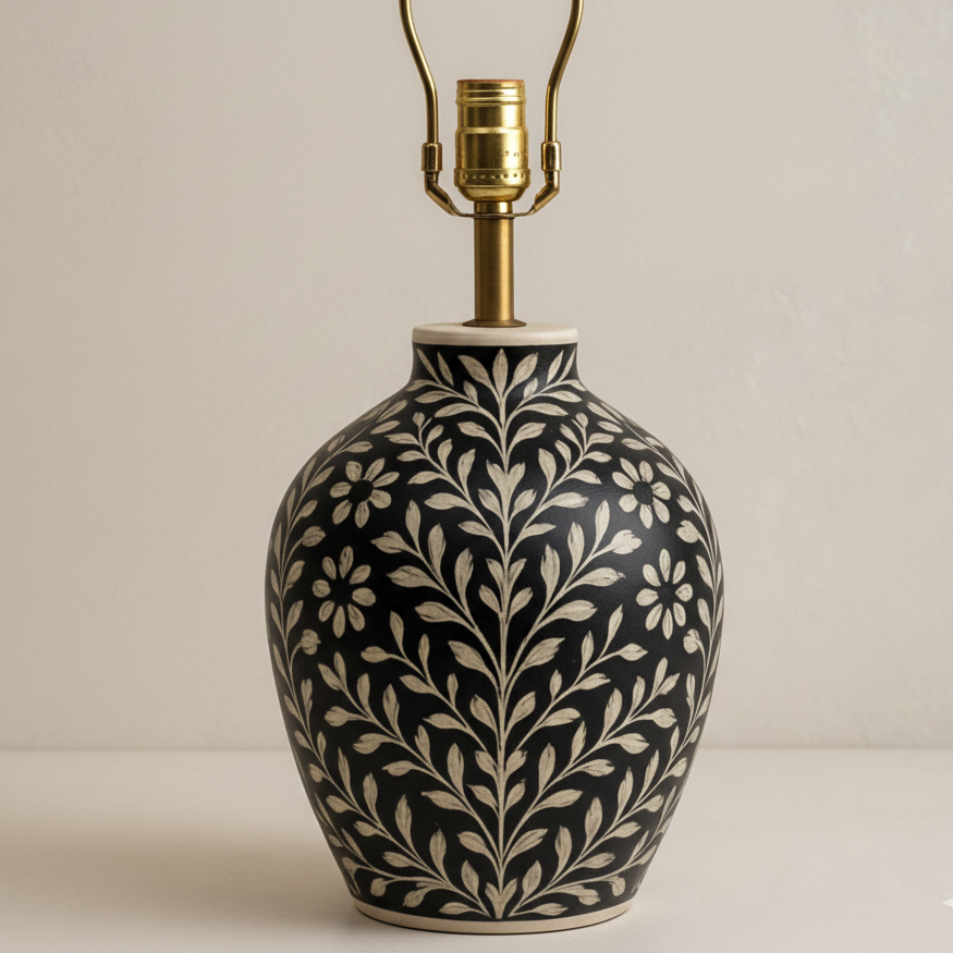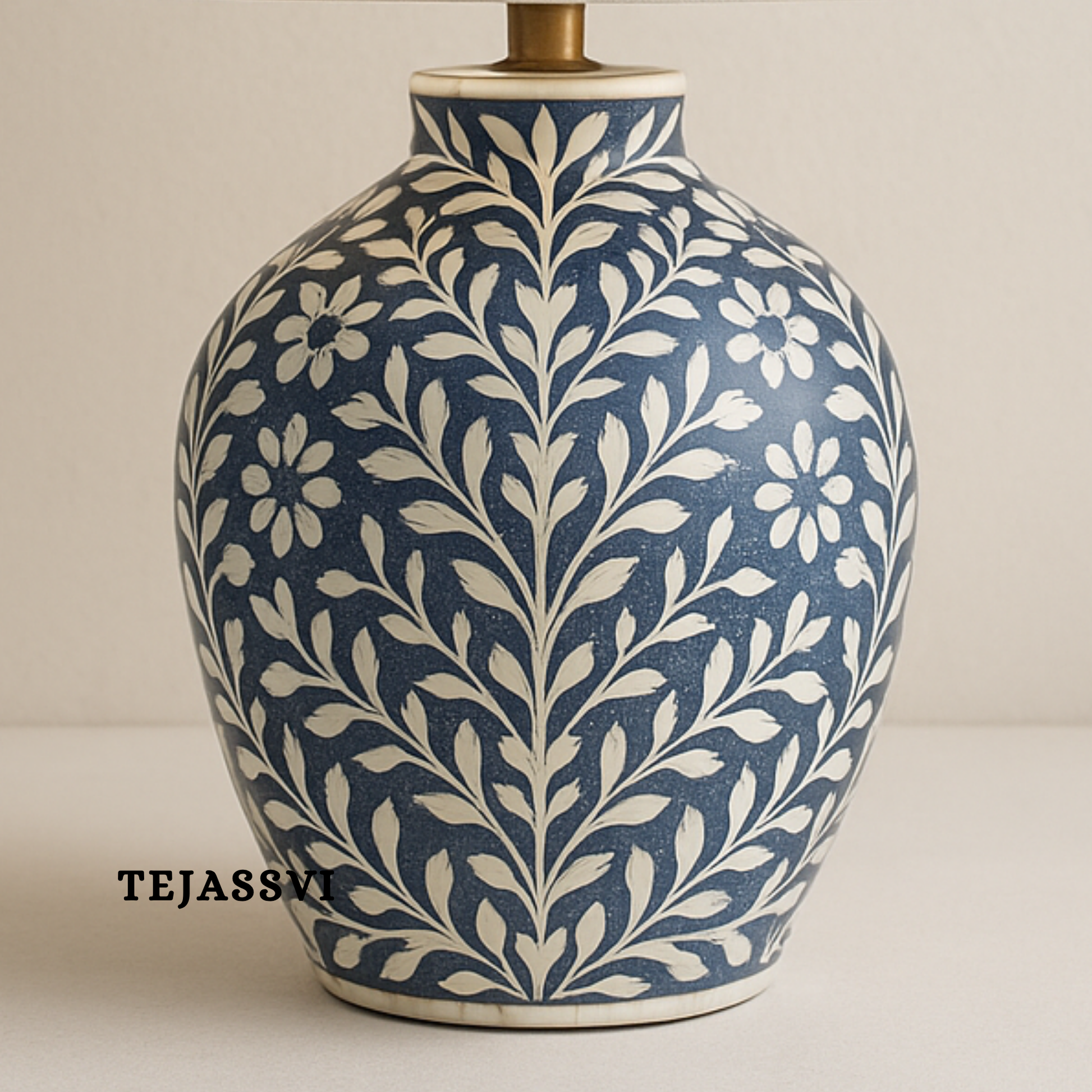 An ideal combination of form and function, our bone inlay lamp is a stunning lighting fixture.