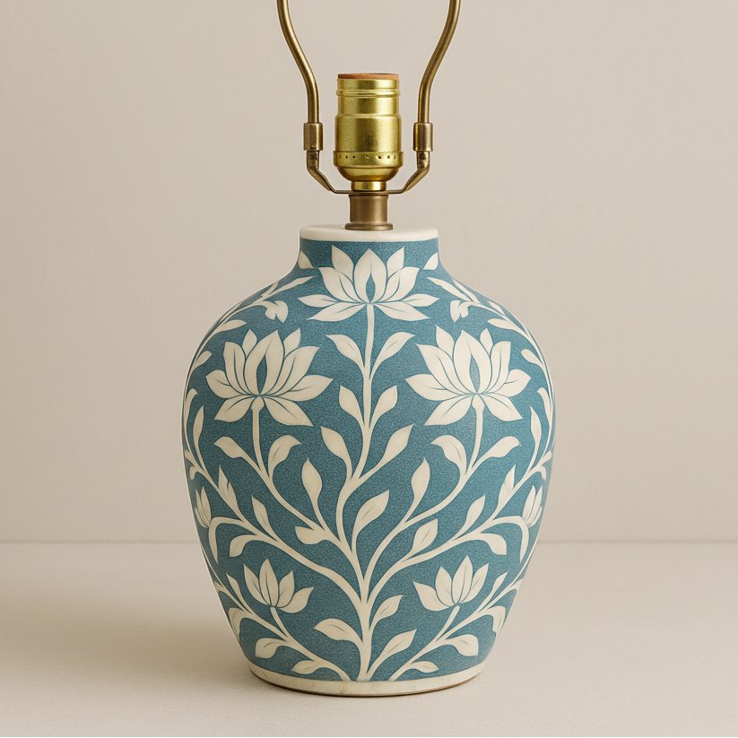 An ideal combination of form and function, our bone inlay lamp is a stunning lighting fixture.