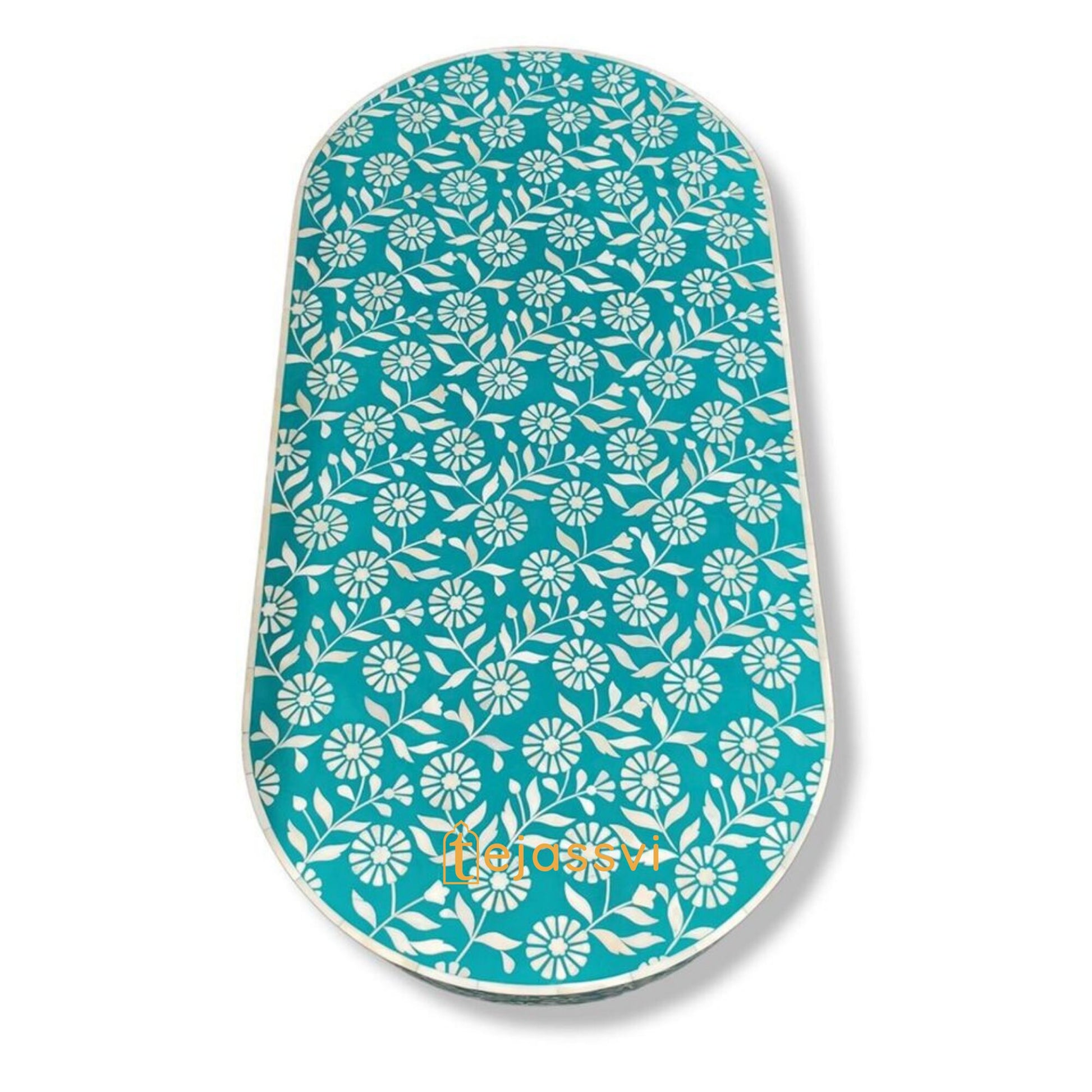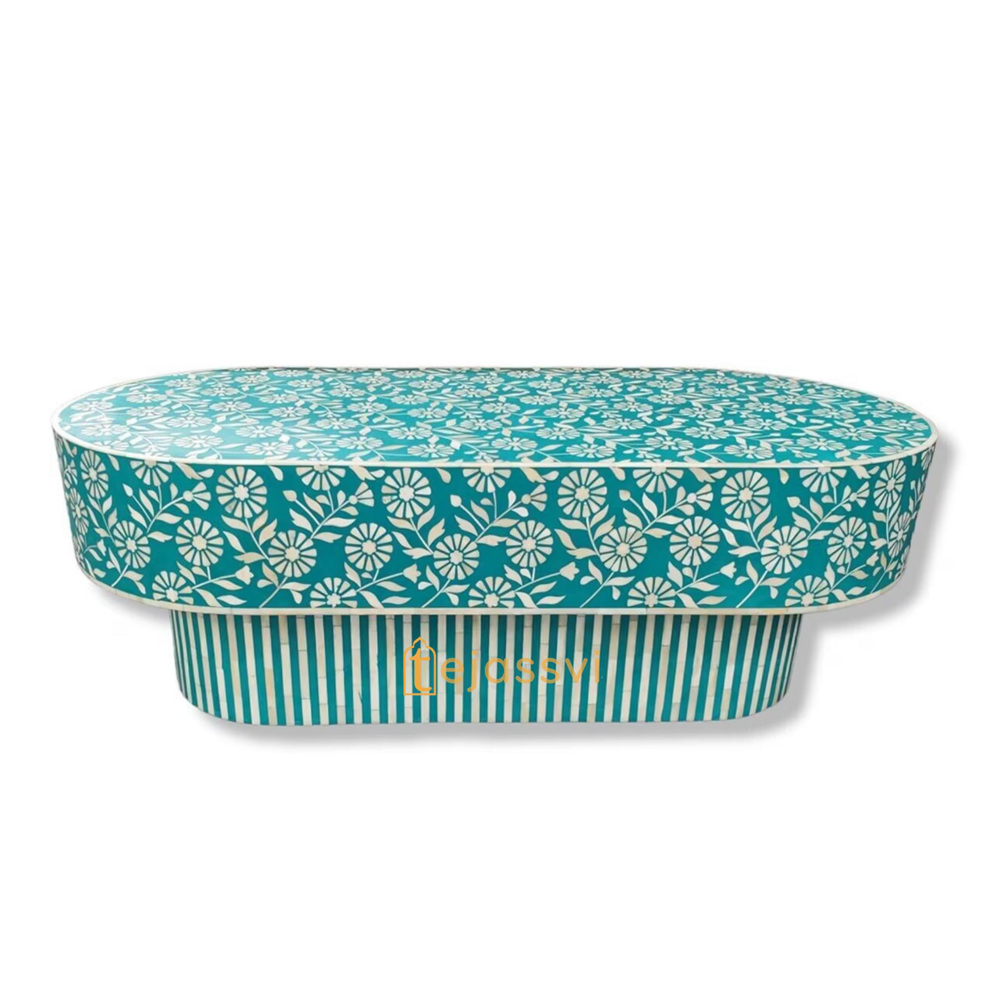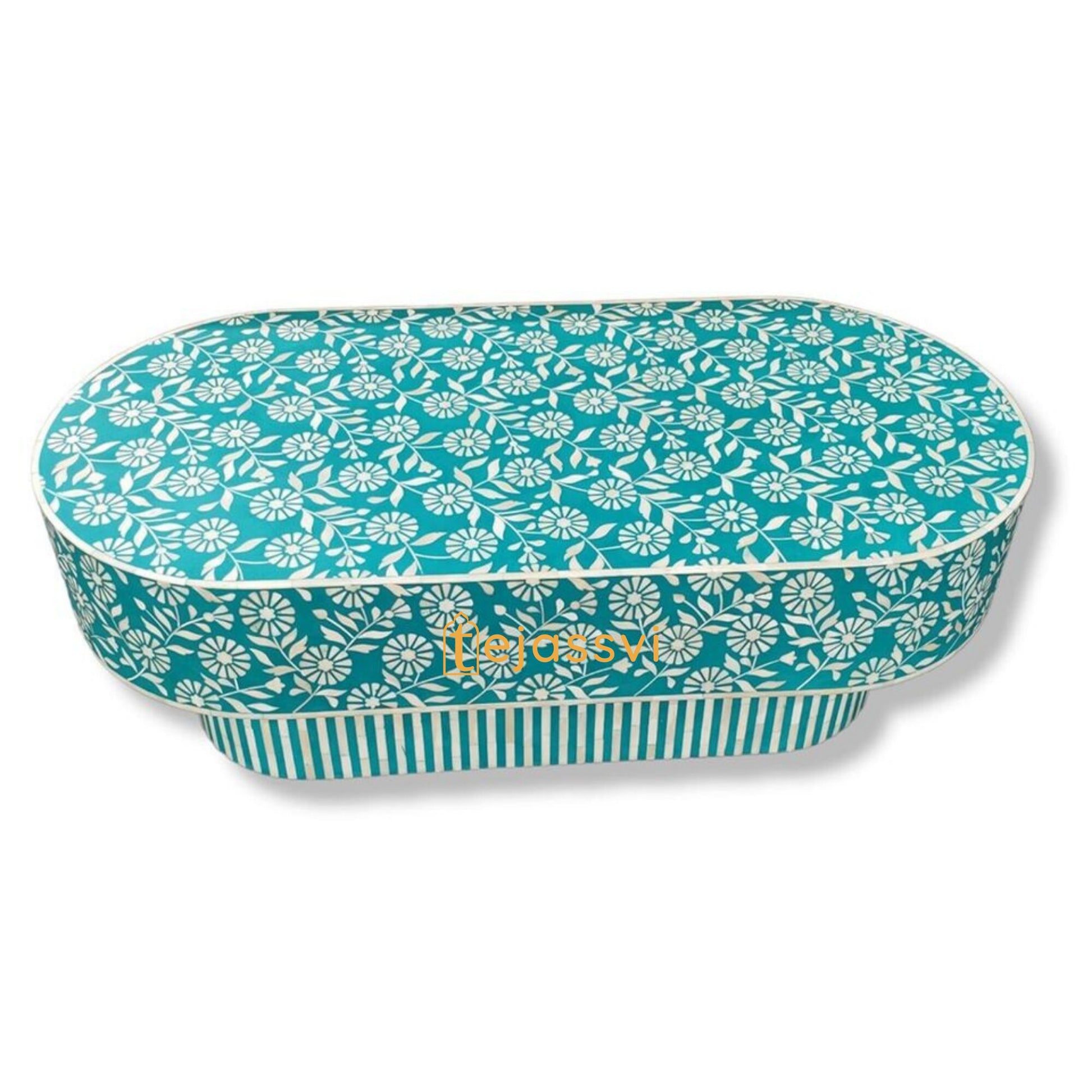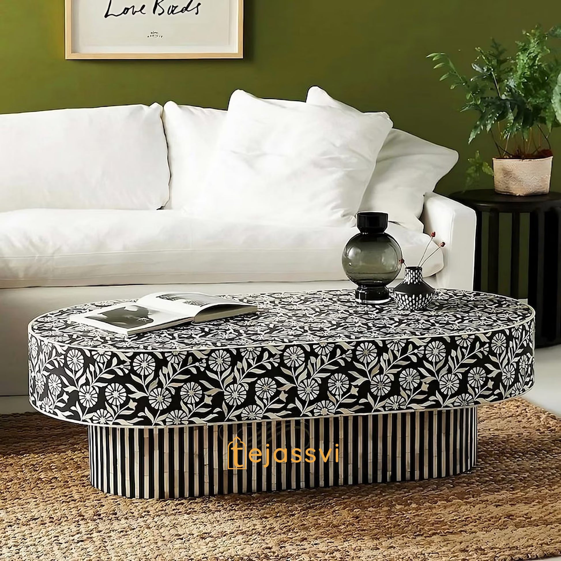 BONE Inlay Oval Coffee Table / Centre Table, Bone Inlay Floral design Oval Coffee Table Handmade Bone Inlay Modern Pattern Furniture Cocktail Table Unique table Hand made Round Beautifully Home Decor Table Indian Handcrafted Art..