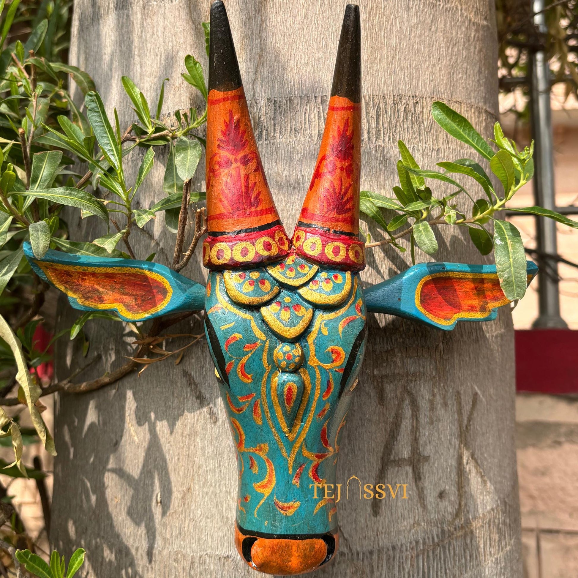Wooden Cow Head | Bull | Nandi Head Mask Wall Décor. Wooden Wall Hanging. Ethnic Indian Art Best Minimalist Gift Idea for Christmas/Diwali Awesomely beautiful 10 Inch long artifact Wooden Cow | Bull | Nandi head to decorate your home/office.