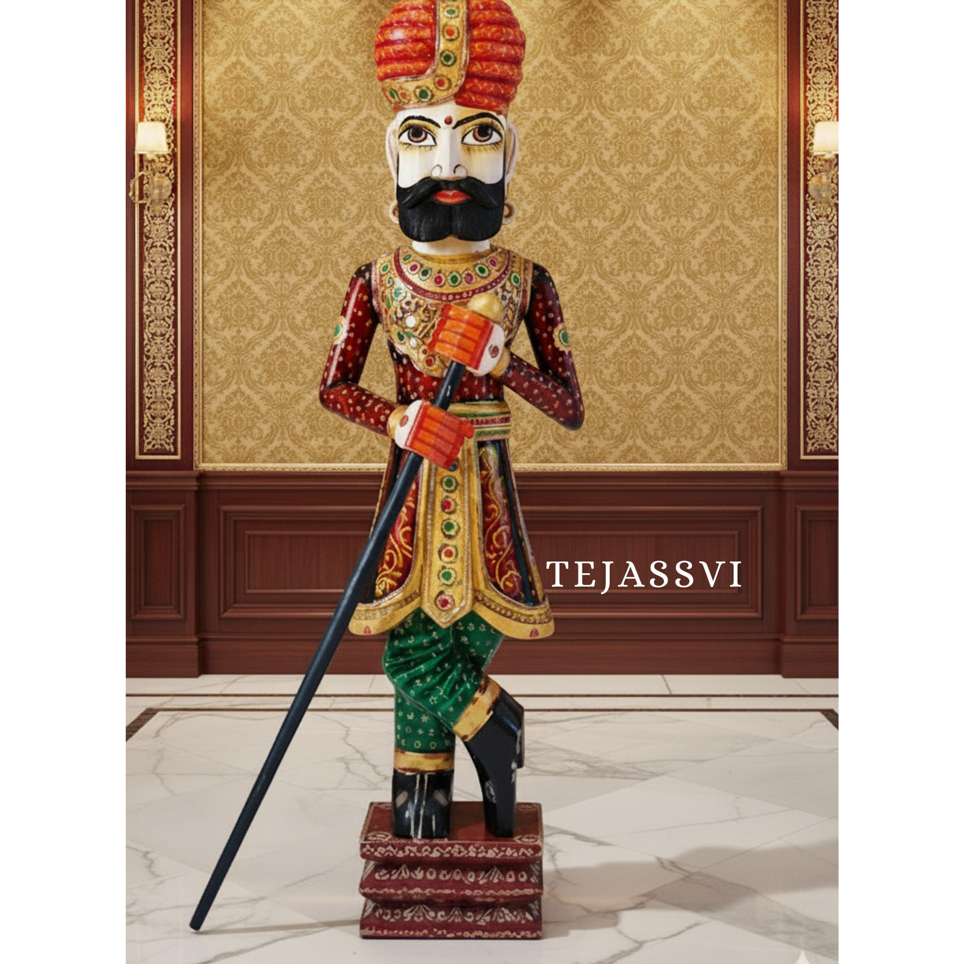 Elevate your home décor with this exquisite pair of 36-inch hand-painted Rajasthani statues. Crafted from high-quality wood, these vintage-look Chowkidar figures embody traditional Indian artistry, making them perfect for adding cultural charm to entryways, living rooms, or as a conversation-starting centerpiece.