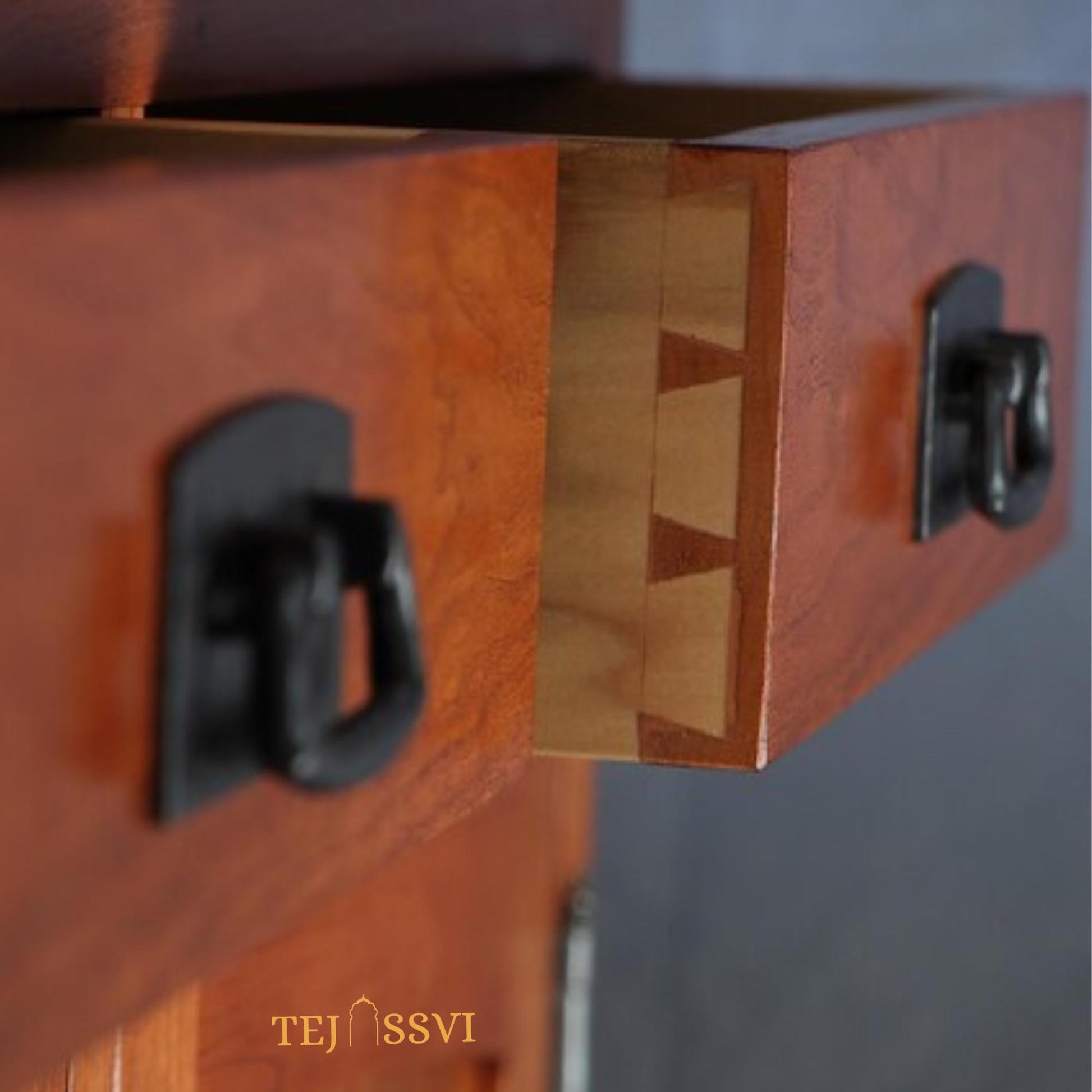 A: Tejassvi is an Indian artisan studio specializing in handcrafted bone inlay, mother-of-pearlinlay, and solid wood furniture. Each piece is designed with intricate craftsmanship and timeless