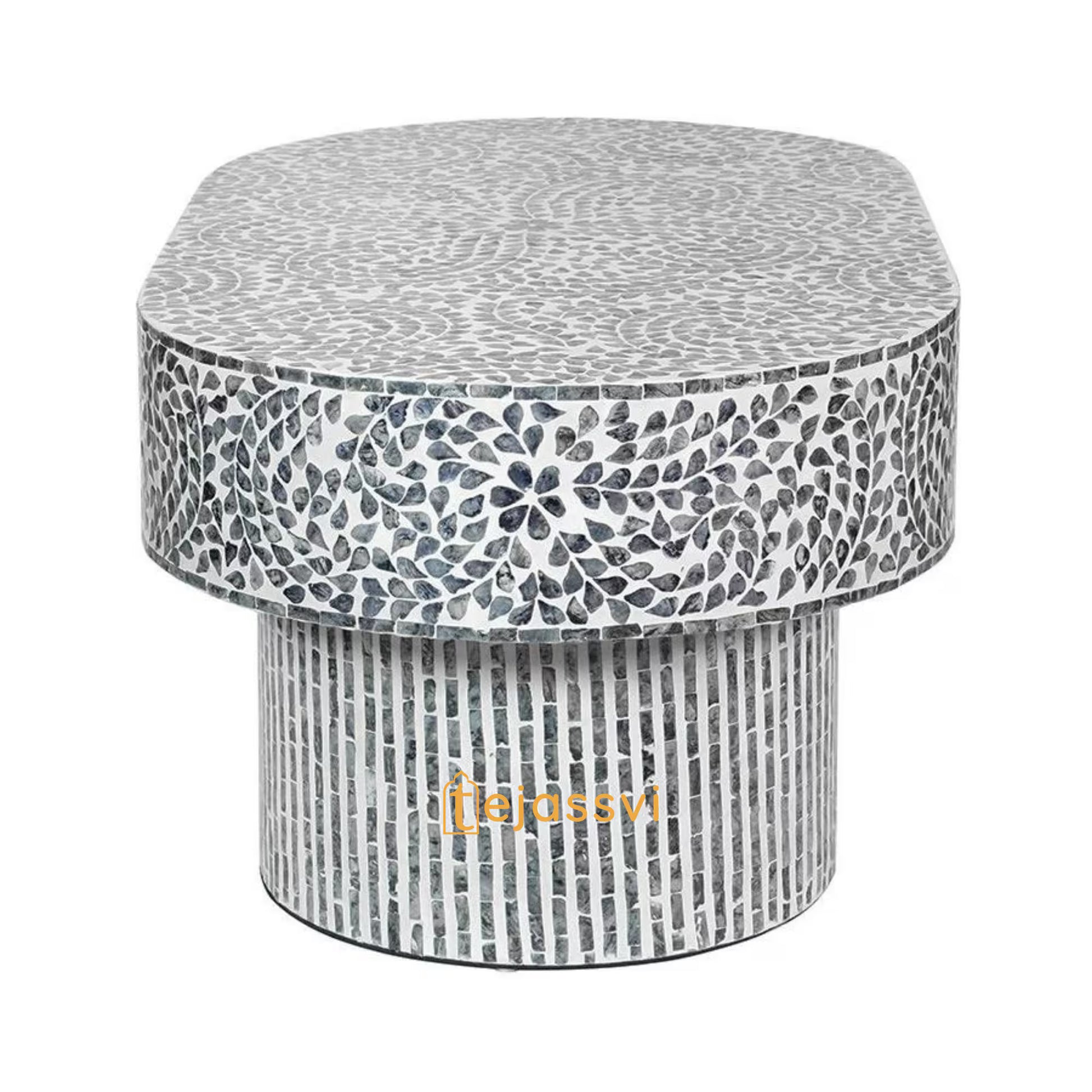 Modern Luxury Oval Shape Wood Coffee Table/Mother of Pearl Centre Table/Floral Design Cocktail Table/MOP InlayFurniture/Bone Inlay Tea Table